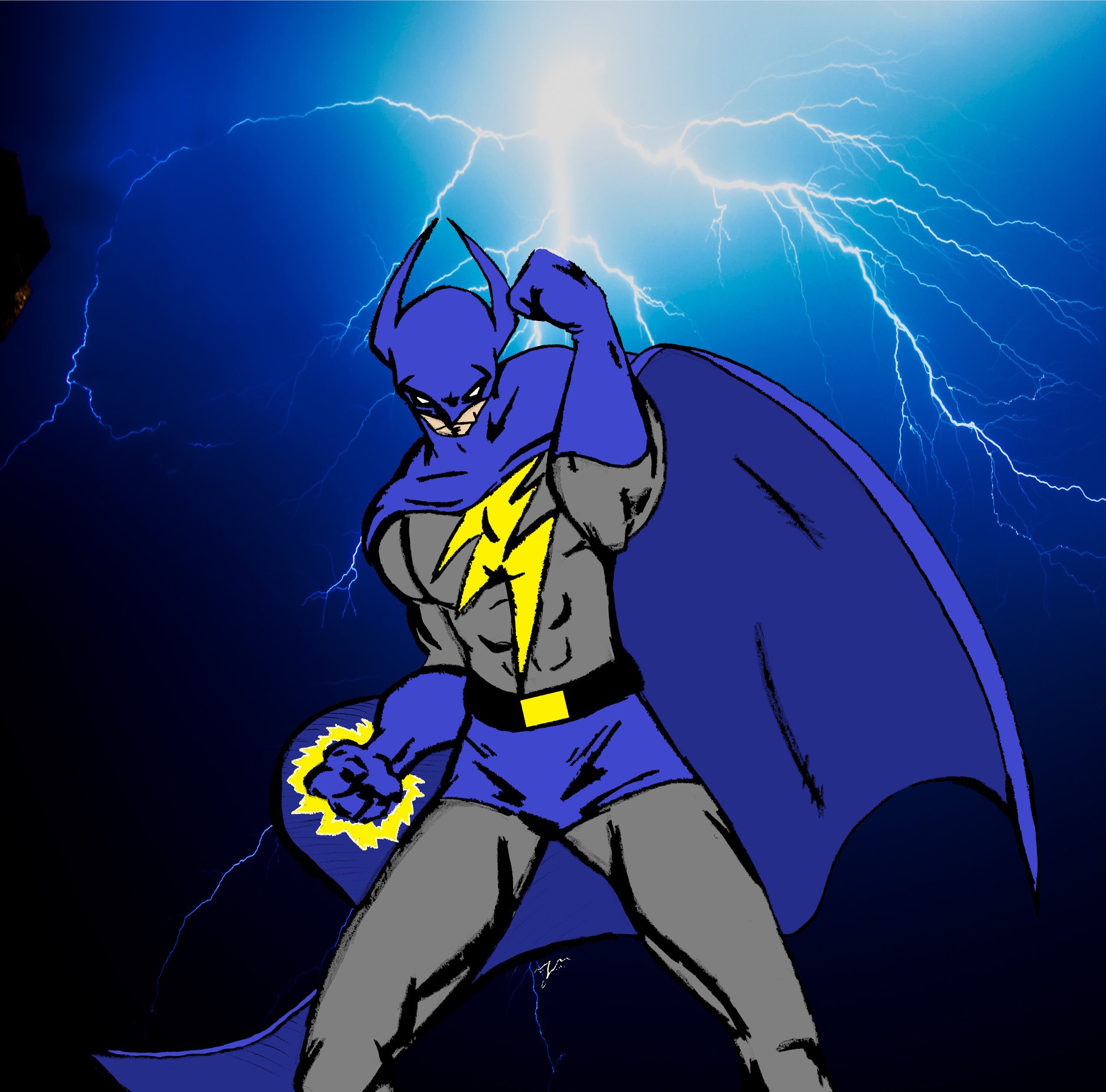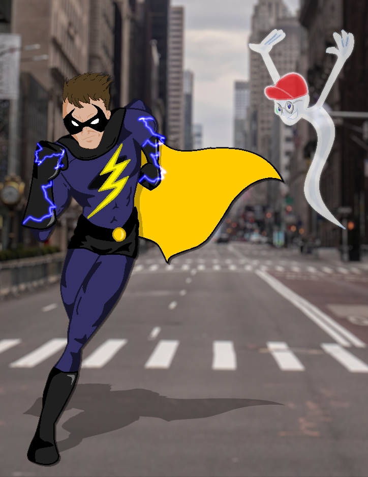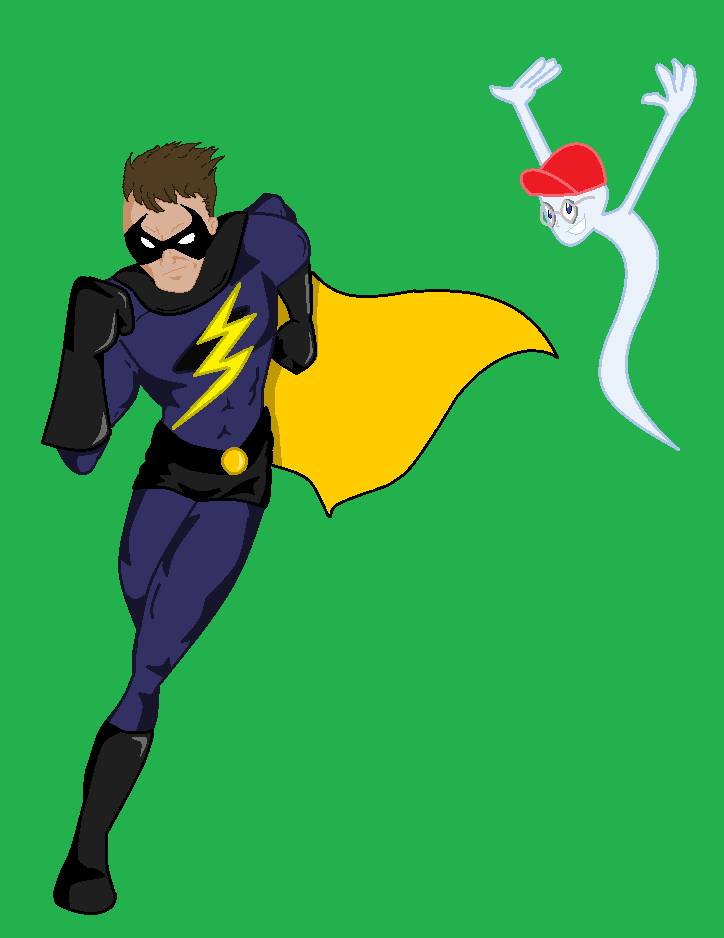 After some quick origins, we see that Harold is fine but seemingly unemployed now (?). He checks the local newspaper for work because this was 1993, and that’s what people did back when I was a kid. He responds to a “Help Wanted” ad, and it is here we meet Mary Peterson. We assume she is in need of a handyman, because the first thing she asks him to do is get the power back on. Conveniently, Harold discovers his newfound powers while attempting to turn the electricity back on. It seems getting hit by lightning does that gives you electric powers. Realizing what he could do, he did what any one of us would do: become a superhero. Before you know it, he’s made himself a spiffy costume and is ready to fight crime as Lightning Bolt. He heads out into the city in his new Bolt-Mobile or whatever dumb fucking name I came up with. But, Lightning Bolt needed a ride since he could only shoot lighting from his hands. So, using the influence of Batman, Lightning Bolt would drive through the city and swing from the rooftops. And the city was meant to be New York City even though I never stated that directly at first. It may be established later on.
