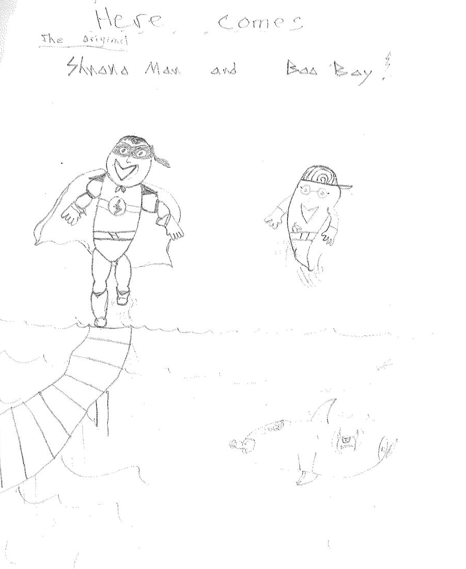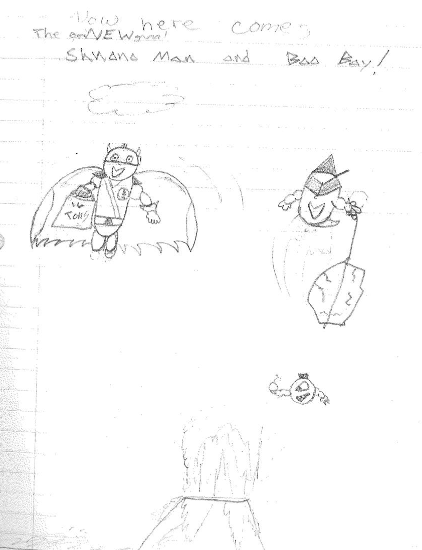 In My Book of Drawings 3, I drew the NEW Shnono Man and Boo Boy wearing new costumes and now flying high in the sky for no particular reason than because. However, the idea to create actual heroes came about one day while looking at the drawings. Superheroes were a thing I loved. And while I had created heroic characters, none were really concealed behind secret identities. So, why not attempt that style of hero?