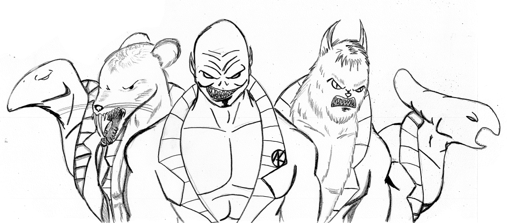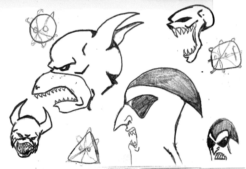 The inspiration for three of designs for the Alien Knights came from one of my favorite movies at that point in my life. Ghoulies III: Ghoulies Go to College was a film I probably shouldn’t have been watching at 12 years old, but I did and it resonated with me for some bizarre reason. In fact, looking at the dark comedic nature of that film, it could explain several narrative choices I’ve made elsewhere. In any case, I used the designs of the three titular Ghoulies for three of the Alien Knights. The last two seemed to be Hail Mary, hoping to find new designs that would stick.