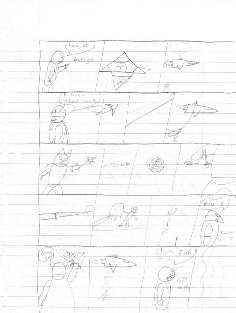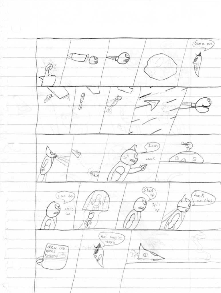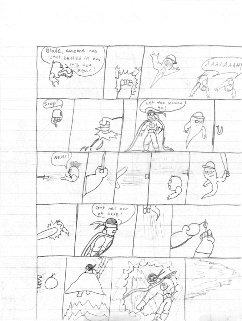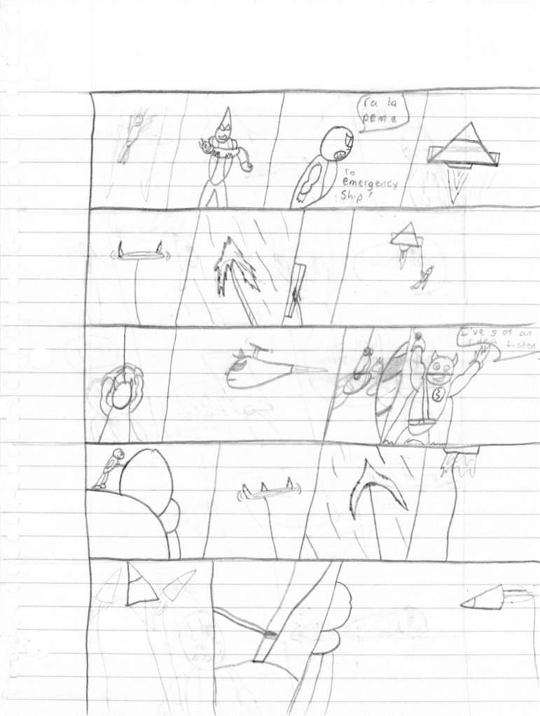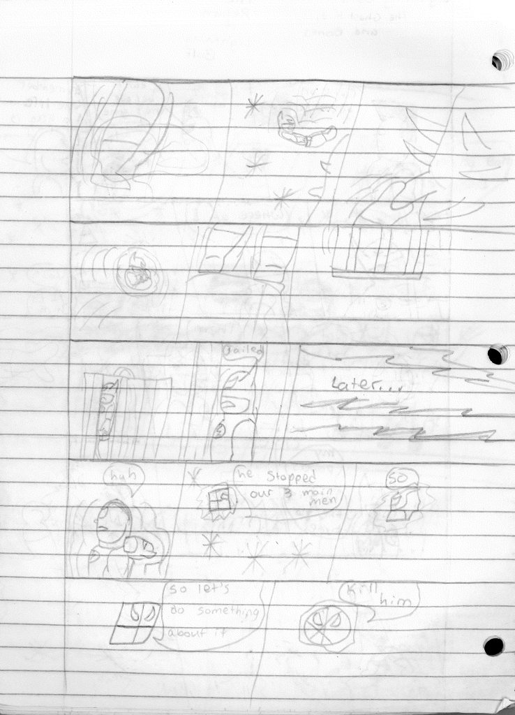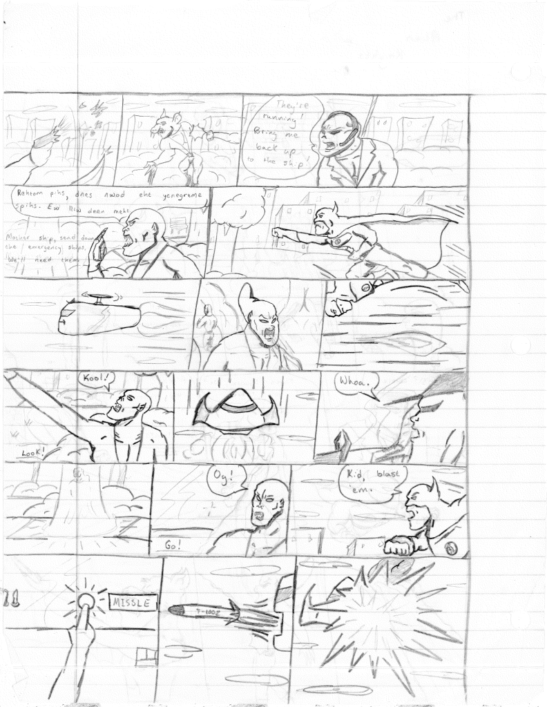 I’m surprised that I incorrectly misnumbered these issues. I think that proves even more to me that I stepped away for an extended break during the writing of the previous comic. Furthermore, I would even say that I took a break during the writing of this comic as well, as the art style shifts again on the second page, becoming more refined. Plus, it looks like I sharpened my pencil for the rest of the comic, so that was nice.