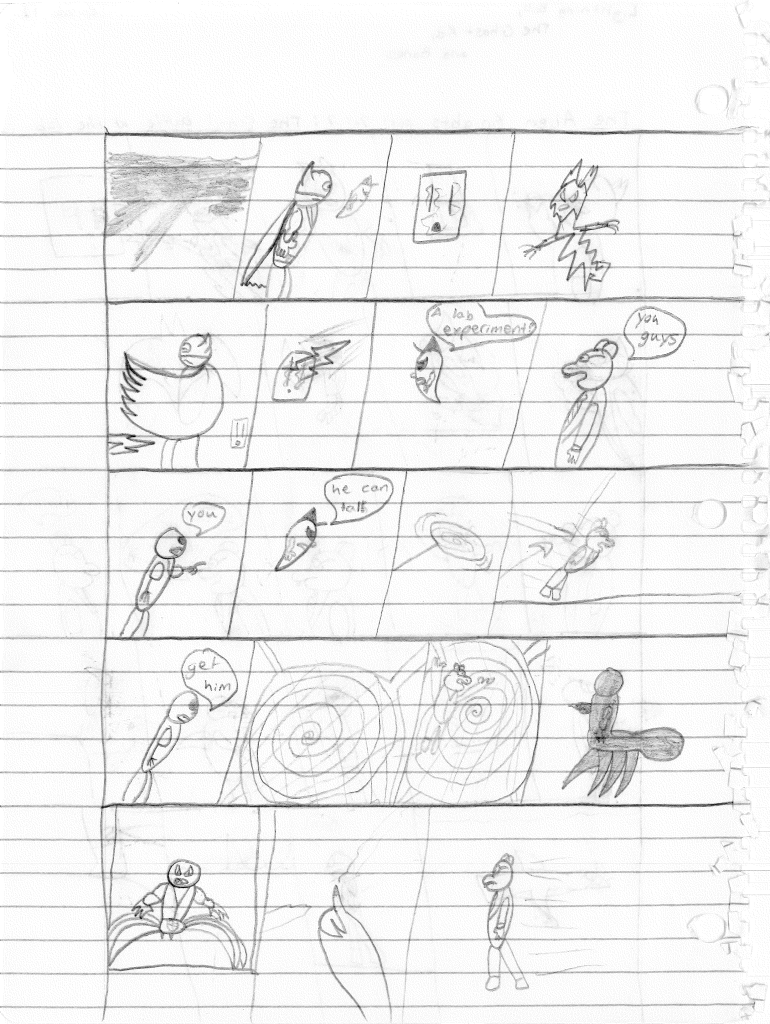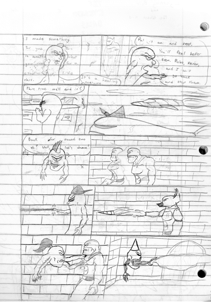 I said there were six unnamed characters introduced in this story but there is still one more unnamed character. That particular character actually appeared issue #19, in that cavalcade of characters that just showed up inexplicably and is named Xerox. He was named this for the very reason you would think. However, I didn’t realize that Xerox was a brand, and that this would be a difficult name to use should I want to publish stories featuring these characters. But since I’m not currently, I’m not too concerned about renaming him. Hell, his whole creation was based on the idea just being cool to me.