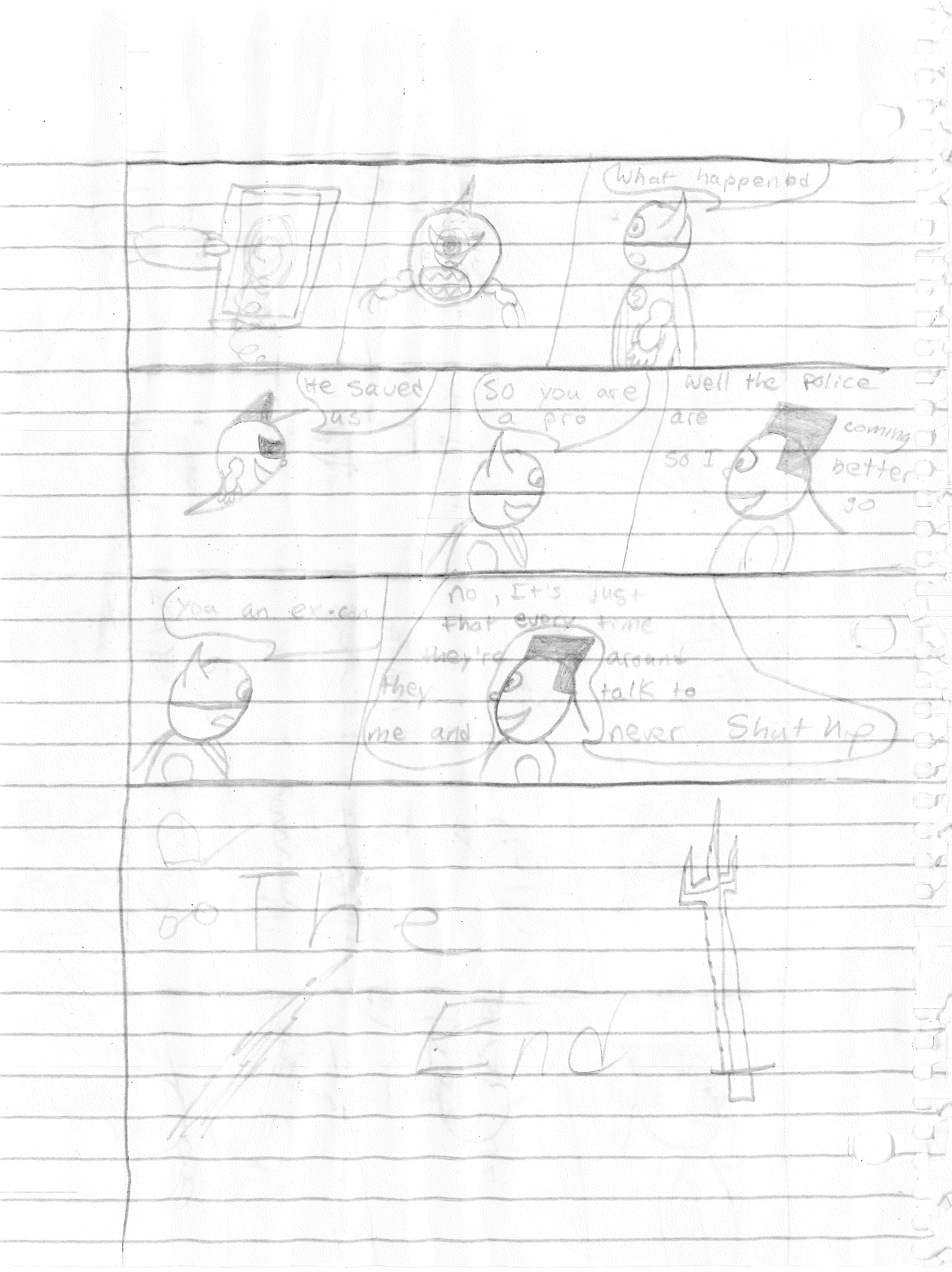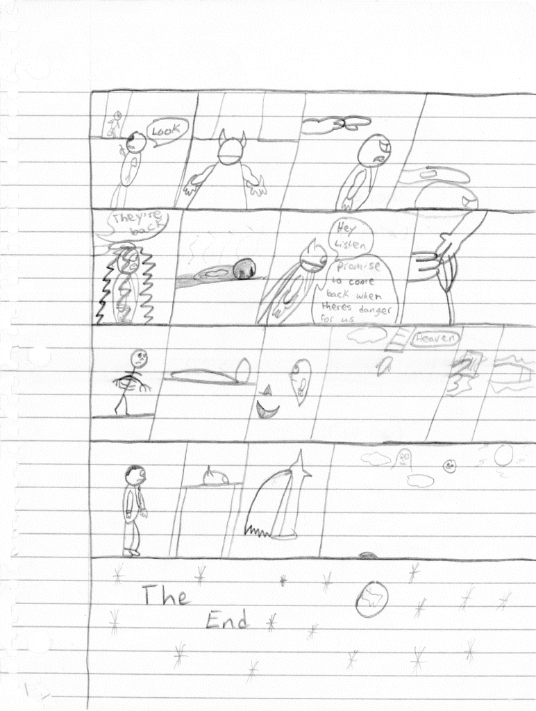 At that moment, Lightning Bolt asks the Ghost Kid and Bones to make a promise to return one day should a threat like this ever rear its ugly face again. Bones returns to his grave, the Ghost Kid finally ascends into Heaven, and Harold officially hangs up his cape. The End.