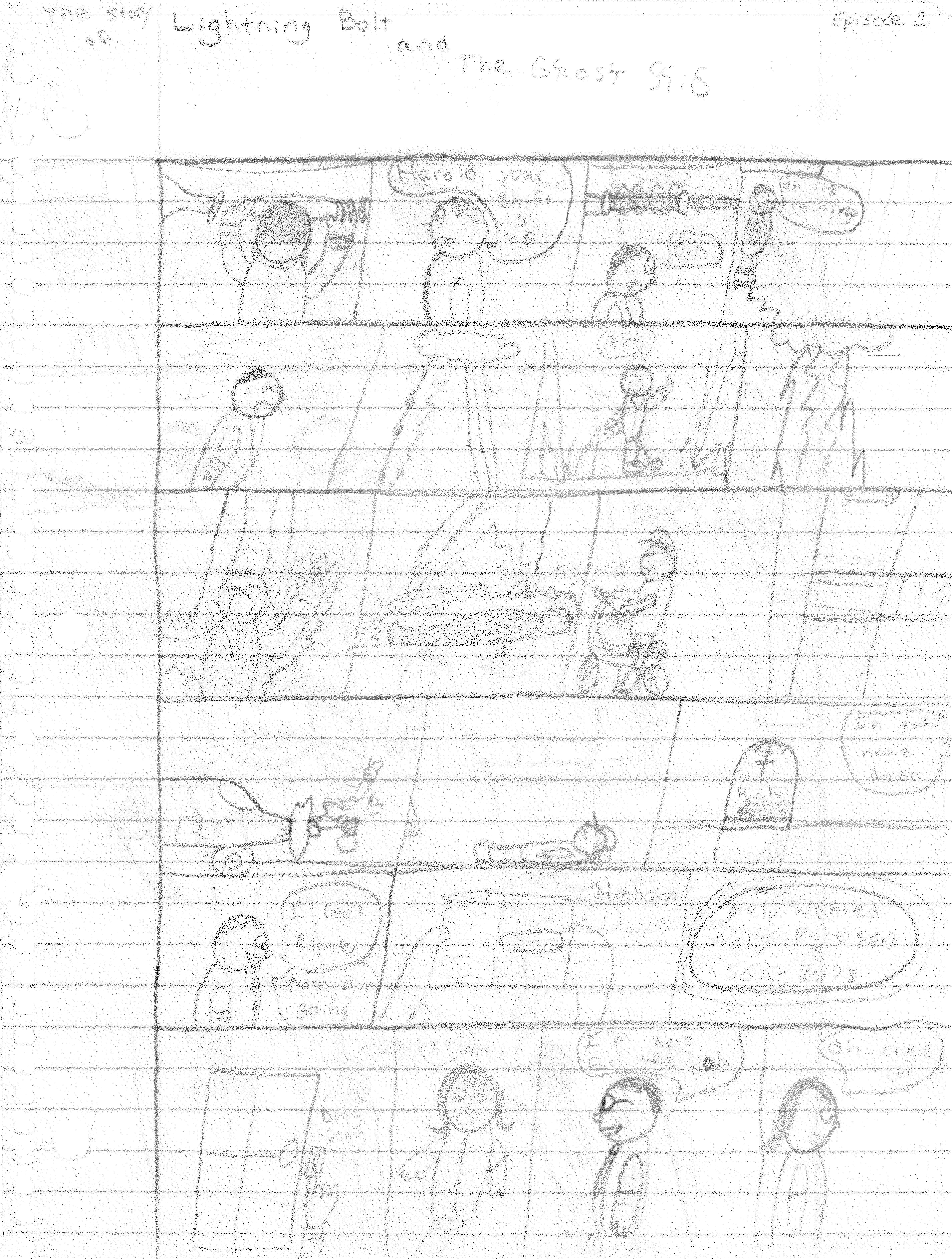 In the premiere issue, we meet our first protagonist, Harold Cane, who was meant to be a scientist. This was not made apparent but implied by the scientific gizmo he was working on. Anyway, after ending his shift, he heads home in a thunderstorm. One might assume he was headed to his car when he is aggressively bombarded by several bolts of lightning before being struck directly. We then meet Ricky Peterson, who is riding his bike home from school in the same thunderstorm. He approaches a crosswalk, in which we assume Ricky has the right of way. Regardless, he is struck by a car that leads to his death.