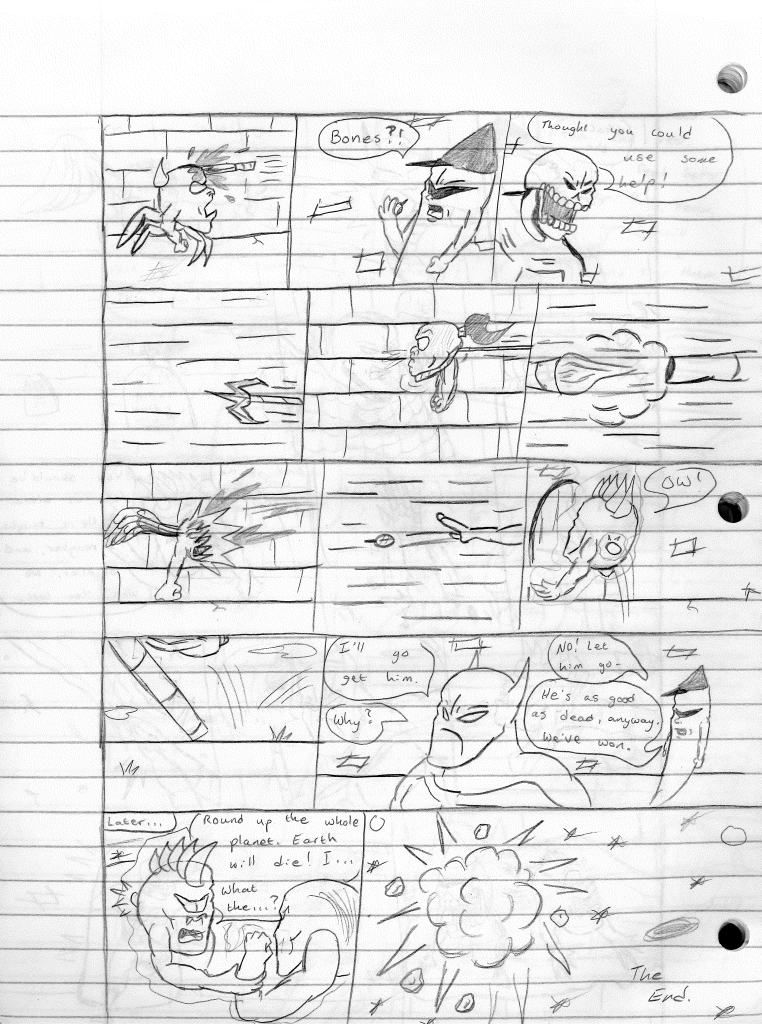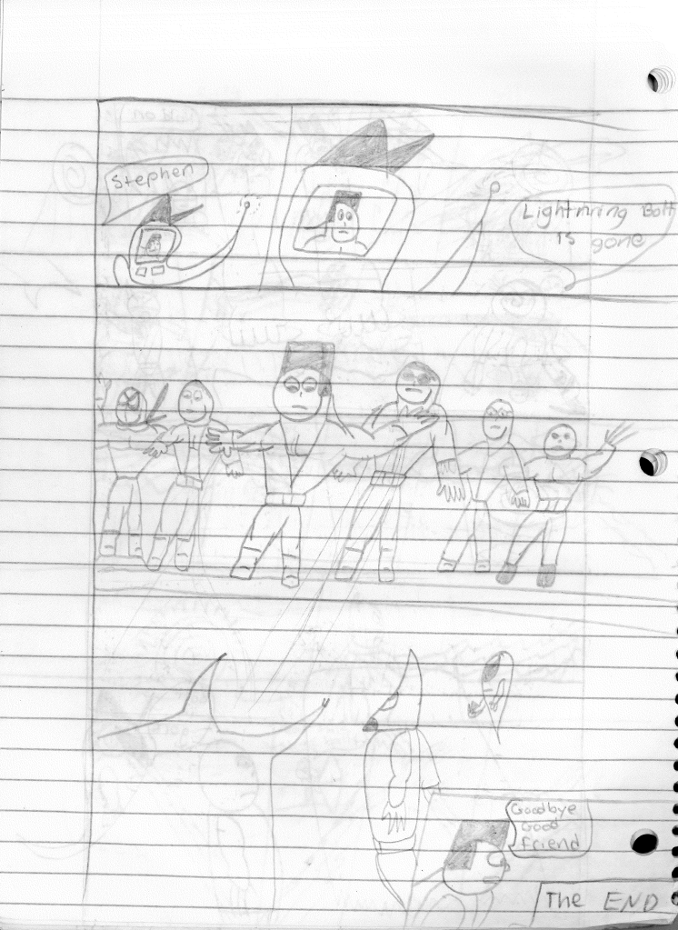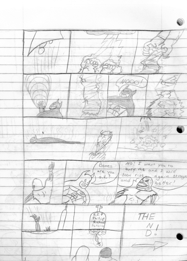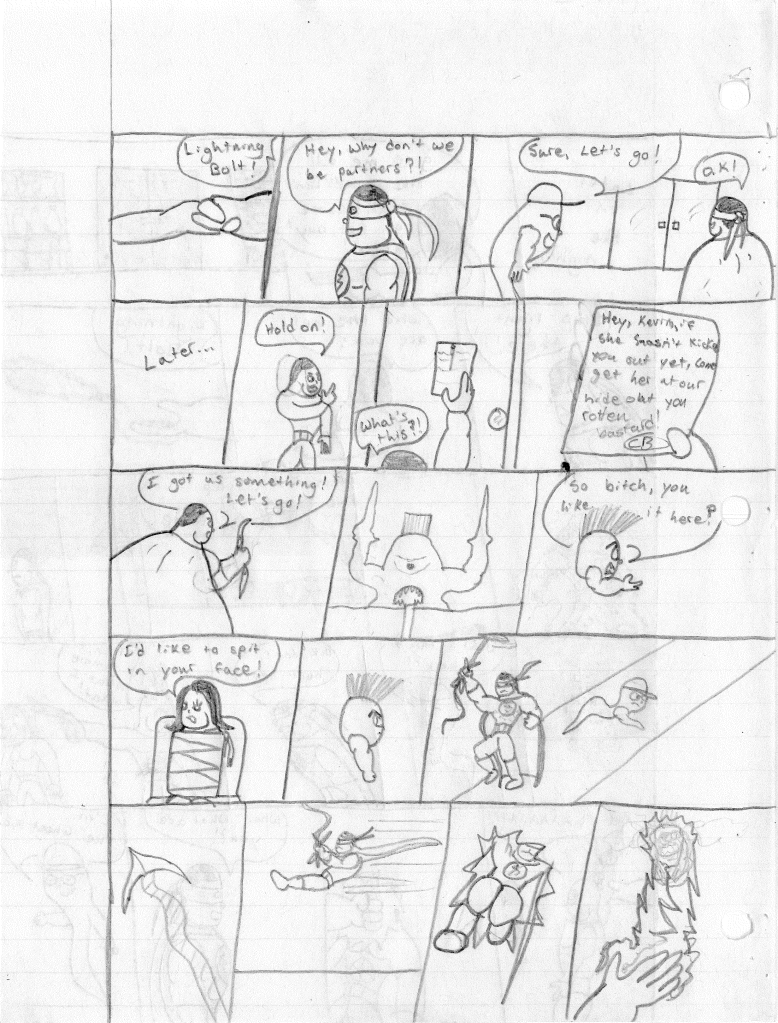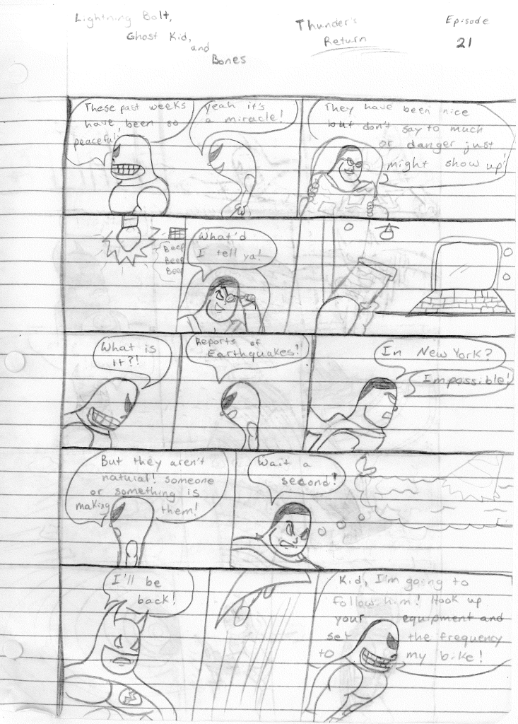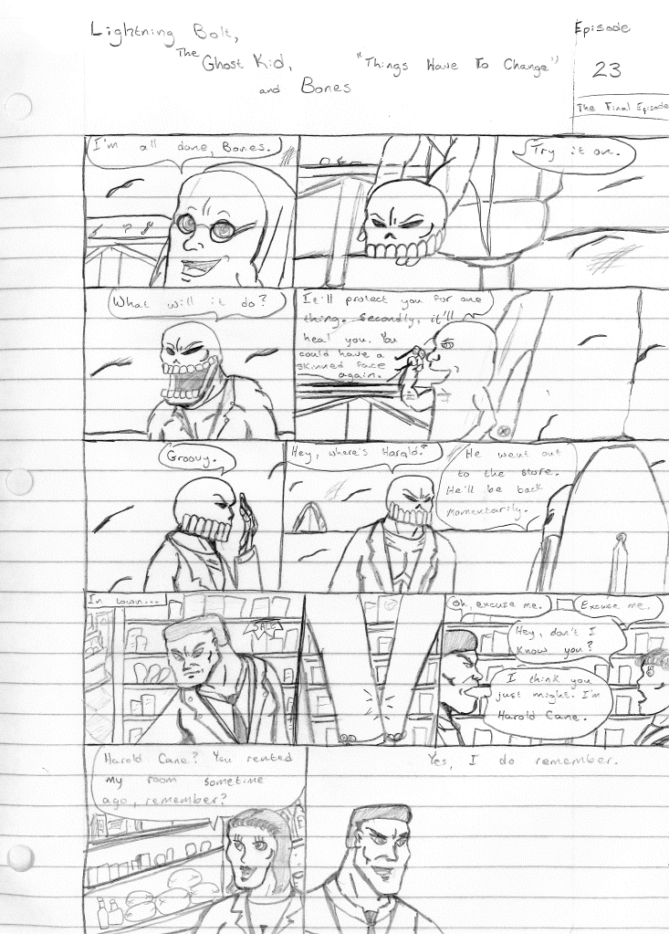 It’s clear that I was ready to end this series, considering this was marked to be the final episode. It’s just unfortunate I didn’t write a proper send-off for the series. I still could, I suppose. Lightning Bolt and the Ghost Kid was my longest running solo series. However, the older I got and life around me started to change, it was becoming harder to write more than one comic. So, I opted to end all of my other series’ and focus solely on The Destructors. Many great ideas were spawned from this series that I carried over to The Destructors. In fact, the characters of Ghost Kid and Bones became integral in keeping the Destructors name alive and well in the future. But that’s a story for another page.