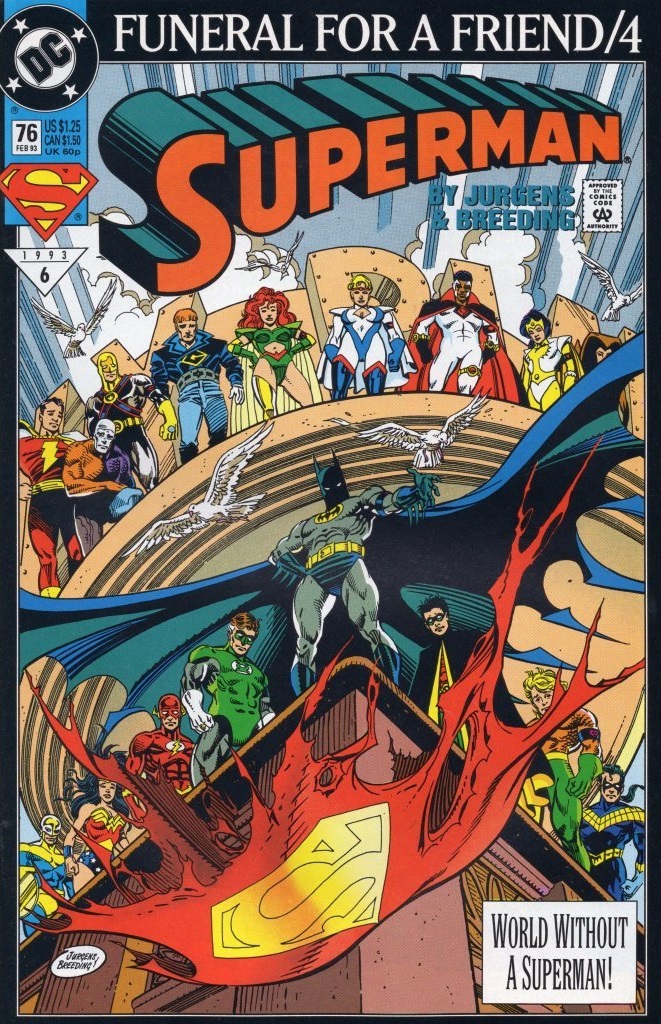 While the most casual onlooker could look at my wealth of stories and creations and think, “that guy is pretty creative,” those who look much deeper can see EVERYTHING that I was either inspired by or outright ripping-off. It was never my intention to kill Lightning Bolt. I just wanted to replicate a scene that I saw on the cover of Superman #76. If you look at the cover below then look back at that final panel above, it’s very obvious.