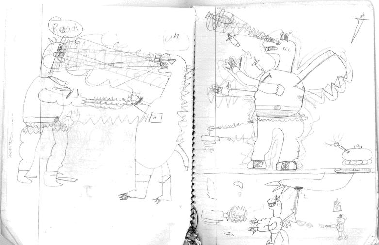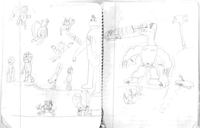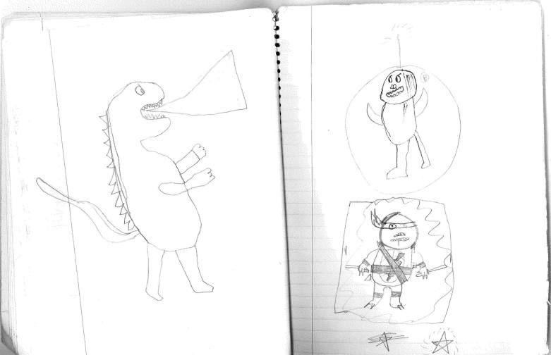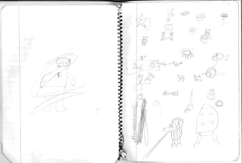 Some big creature, Flattop, Super Mario and even a Lips Manlis sketch (which isn’t mine).