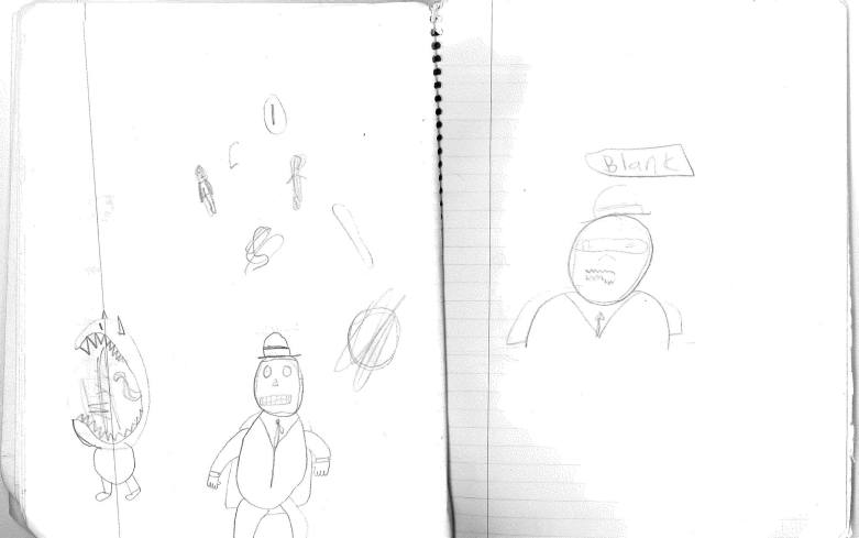 Shnono Man and Boo Boy! Honestly, I have no idea what “shnono” means… It’s just something that came from that face. Oddly enough, I have Google searched the word and results appear. I’m afraid to click them… Robo Rabbit vs Manic Marlin….I thought he was a “maniac” not “manic”…