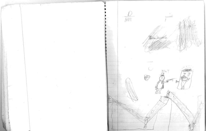 A gimmicky 3D-ish cover that I created because there was a hole in the cover. I opened it up a bit and drew the next page.