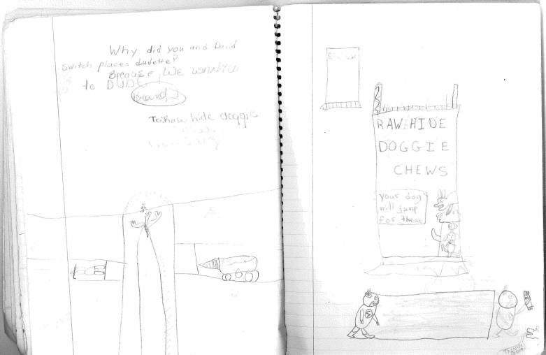 One day I decided to go all George Lucas on my drawing books and redraw them. What I really did is redraw some of the pictures from each book, making it more of a “greatest hits” style presentation. Because I’ve never had the foresight to date anything, I have to guess when I did this and based on the art style, I’d say early 2000s.