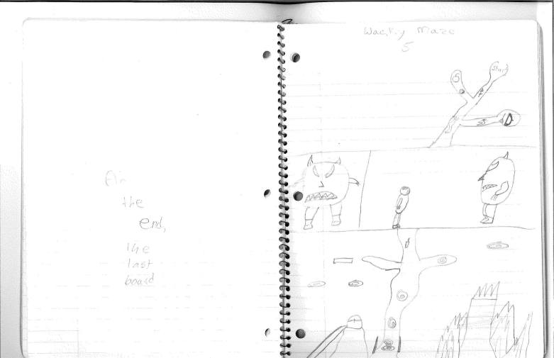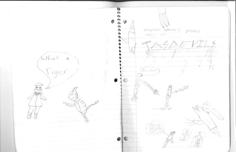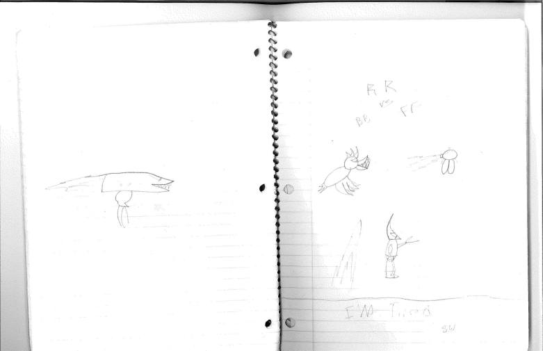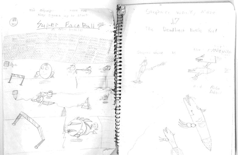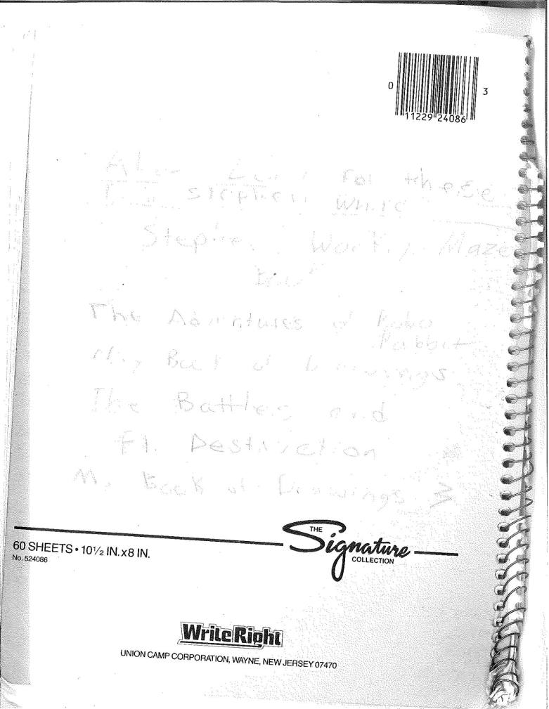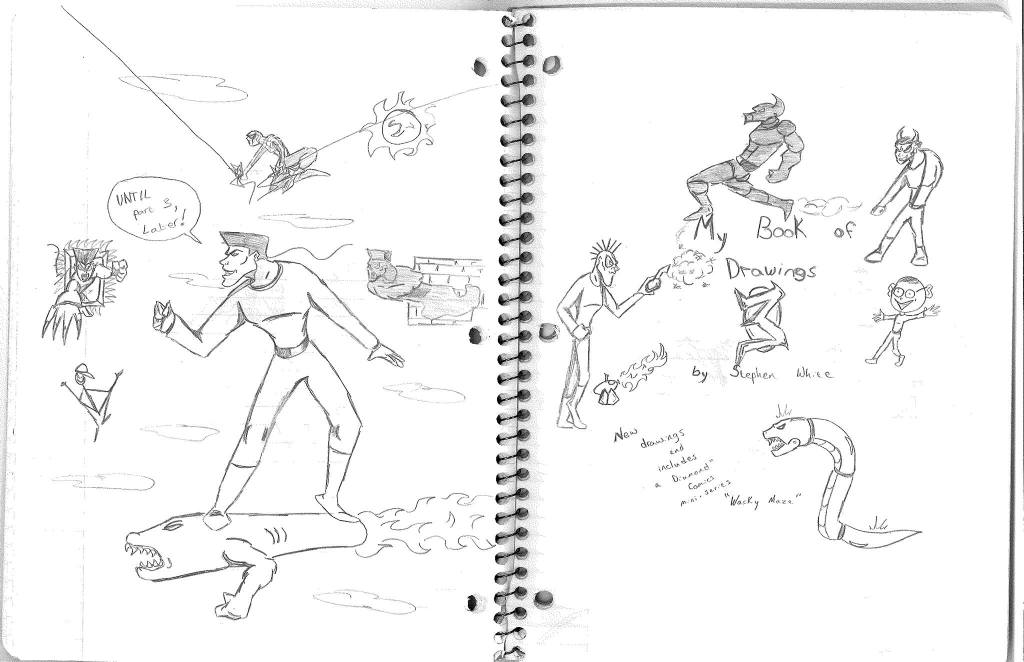Presented here is my first notebook full of drawings that I ever kept, dating back to 1990. I kept every page in tact so you can see them as they were. Looking through every pic, you can tell what my interests were at that time in my life. And even though it isn’t in the notebook anymore, Stephen’s Wacky Maze was also birthed here. The scan quality of these pictures was hard to adjust any darker, so some of the pages look faded. If I can ever improve the picture quality, I will replace the old pic for higher quality pics.