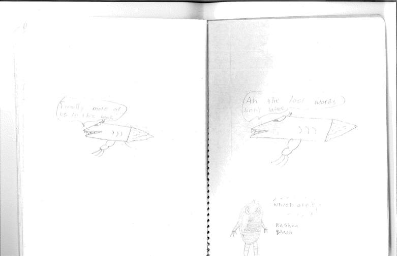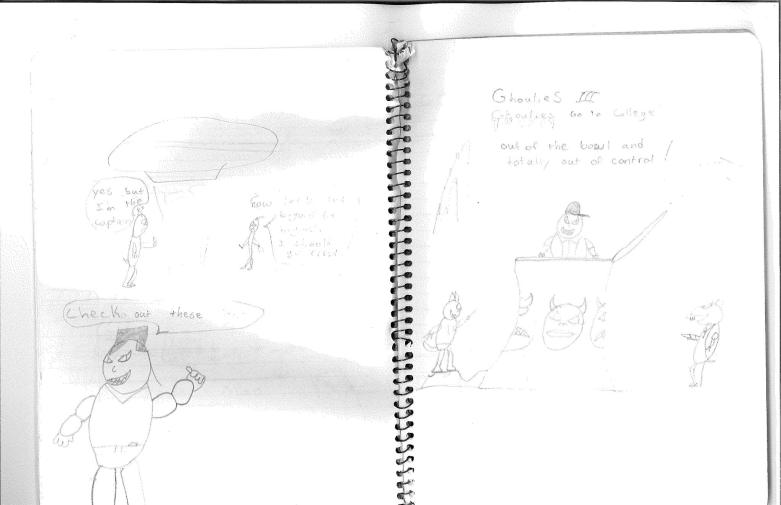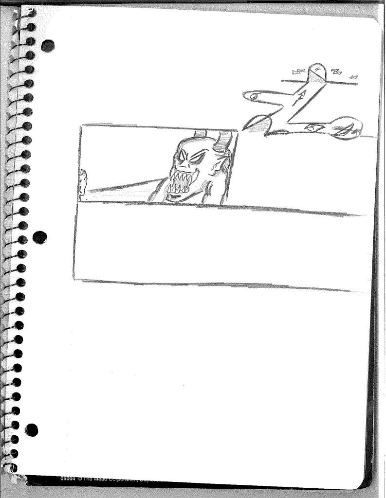 I noted here I was tired, meaning that I was drawing page after page trying to fill the book but didn’t have any great ideas and was just winging it. This is a great example of Hollywood sequels when they run out of ideas. They don’t let that stop them!