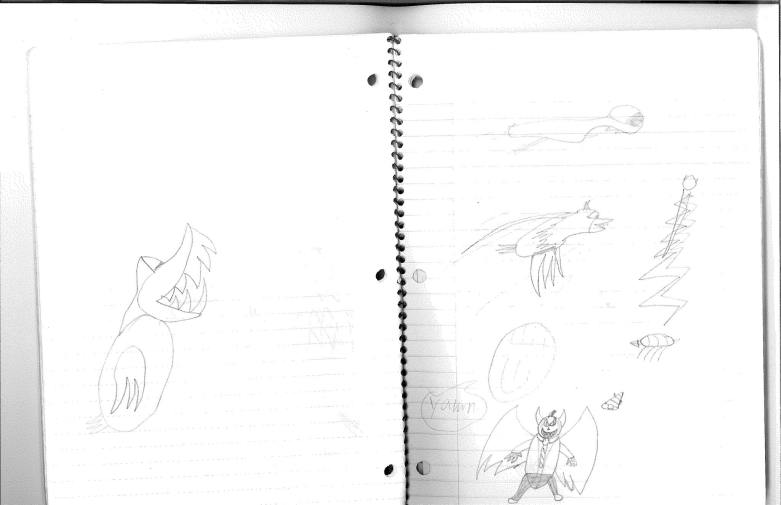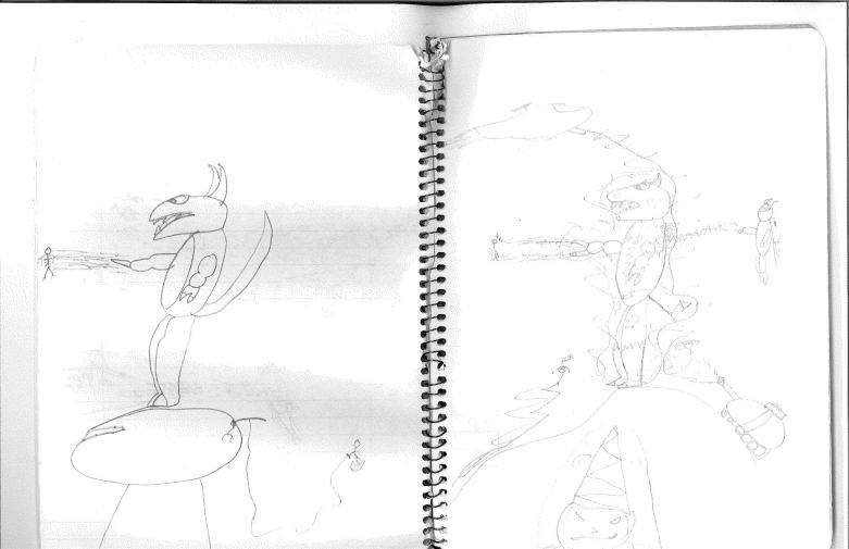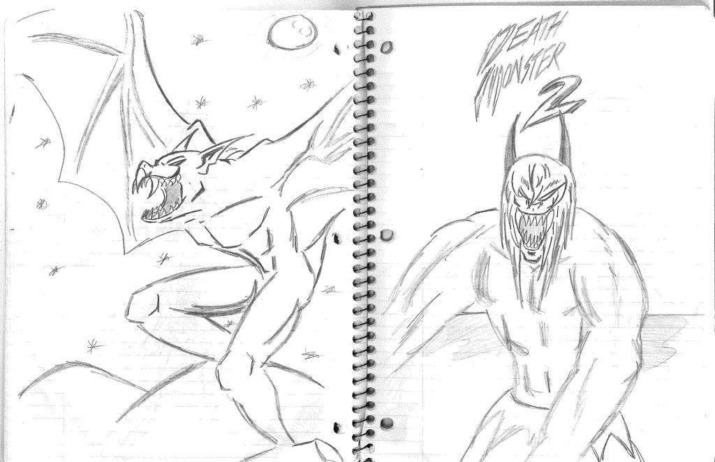 Whatever this thing is and the Death Monster 2. I previously posted a redrawn version of the original Death Monster 2 so this would be the 2nd drawing and the other one the 3rd.