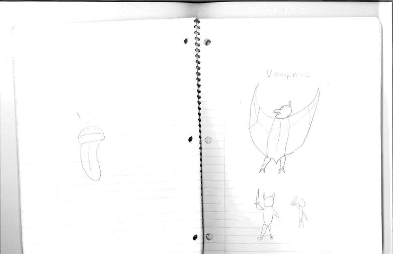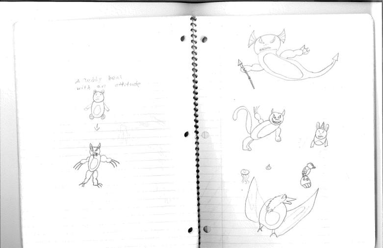 A kitten, I guess? and Death Monster 2 which was meant to be scarier or more menacing than the original sketch. Meh…