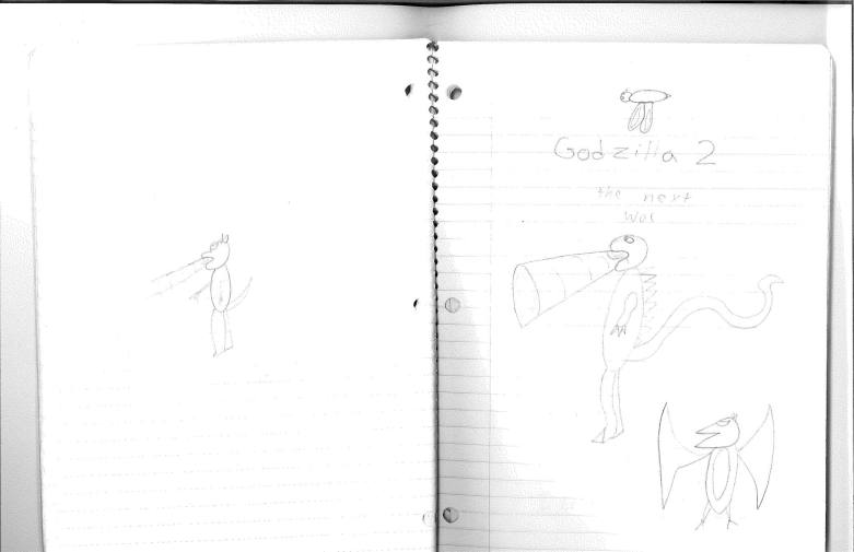 A reverse tracing of the previous Godzilla sketch. Plus an ape bomb and Slash.