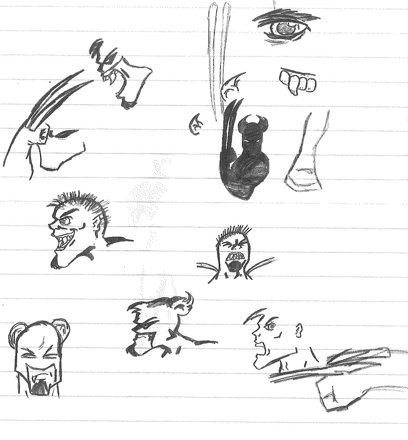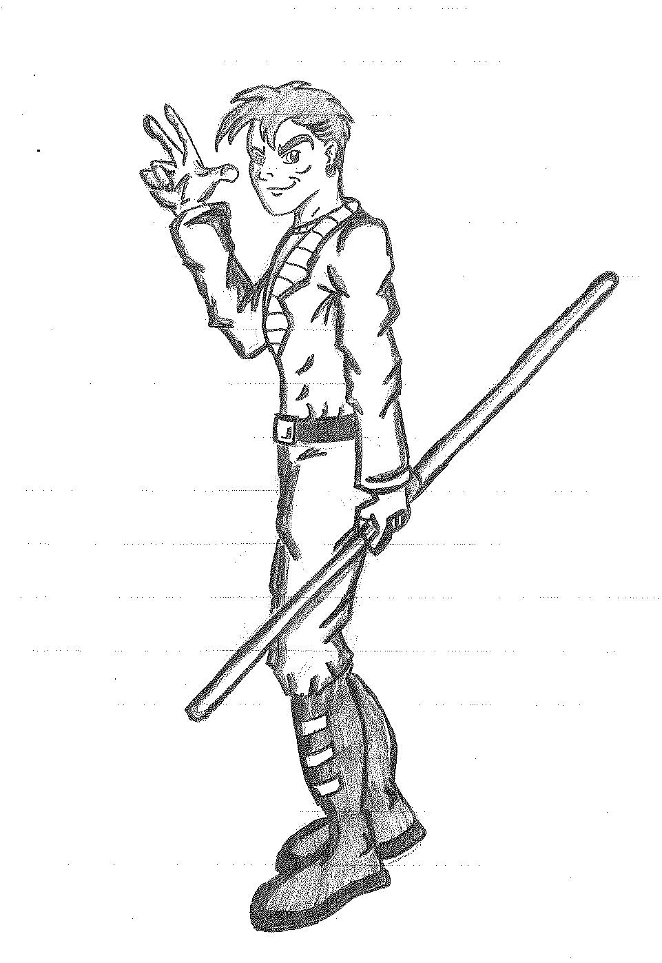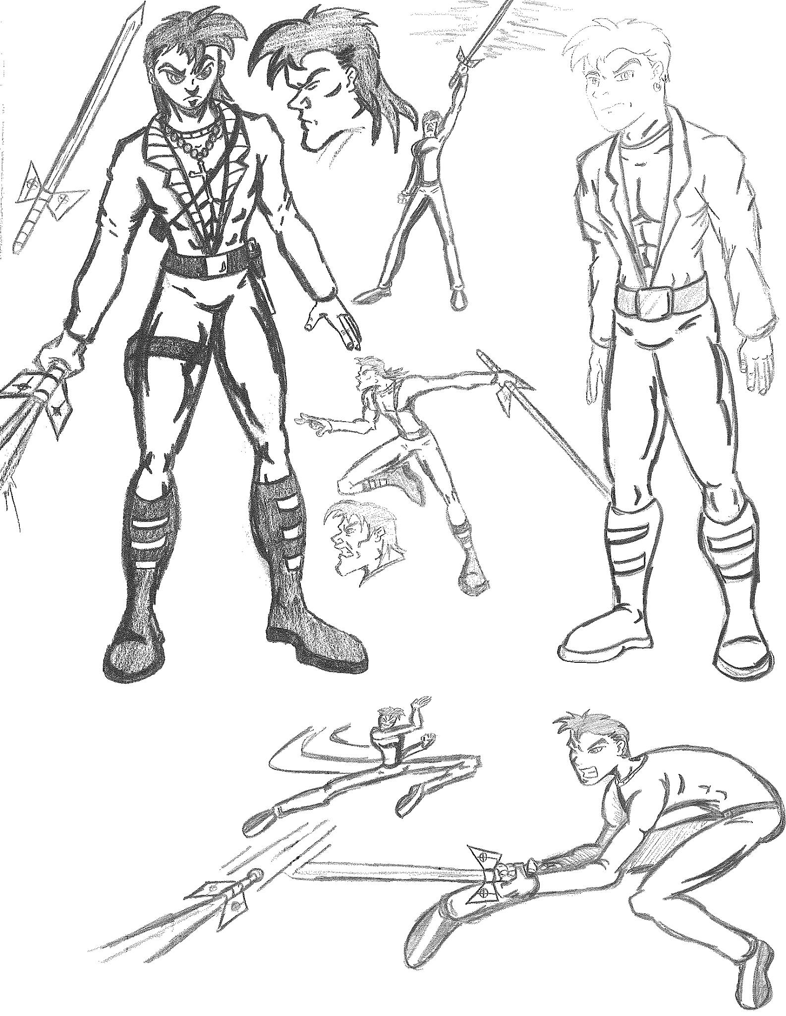 Looking through all of those sketches and doodles, you can probably deduce who’s who. But I also see characters that are a far cry from who they were originally, so I’ll break down my reasonings. First things first, you’ll notice “S” has a similar, but more anime-inspired hair. He’s also sporting a bo staff, as opposed to his traditional (or non-traditional) sword. Furthermore, he is no longer “S” but now A.C. This is a nickname I chose that has two meanings for me. One is that it relates back to one of my favorite things as a kid, The California Raisins. The other is that the letters “A” and “C” were the initials of my son. I thought since I named the original character after myself, it felt appropriate to name the remake after my son. Granted, we never referred to him as such but the initials are there.