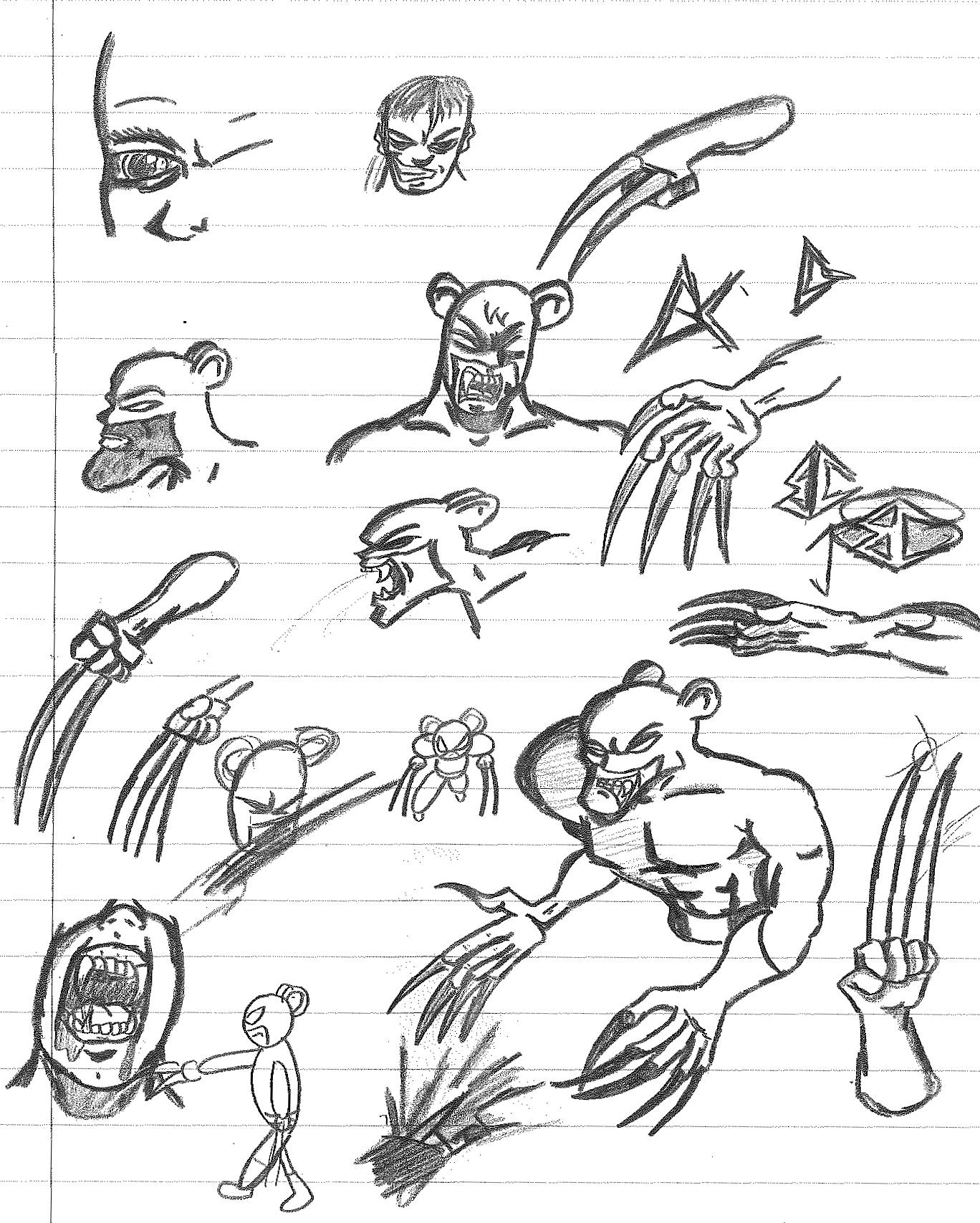 With Wolverine becoming a popular favorite amongst me and my friends, I was eager to create my own version of the character. However, I wanted to be sure that it wasn’t a blatant rip-off. So, I figured a bear would be more than intimidating. Then when it came to the claws, I opted for two that were built into each glove. Much like how most people assumed Wolverine’s claws weren’t part of his anatomy when he first appeared. As you can see with my initial drawing, I tweaked the design before his first appearance.