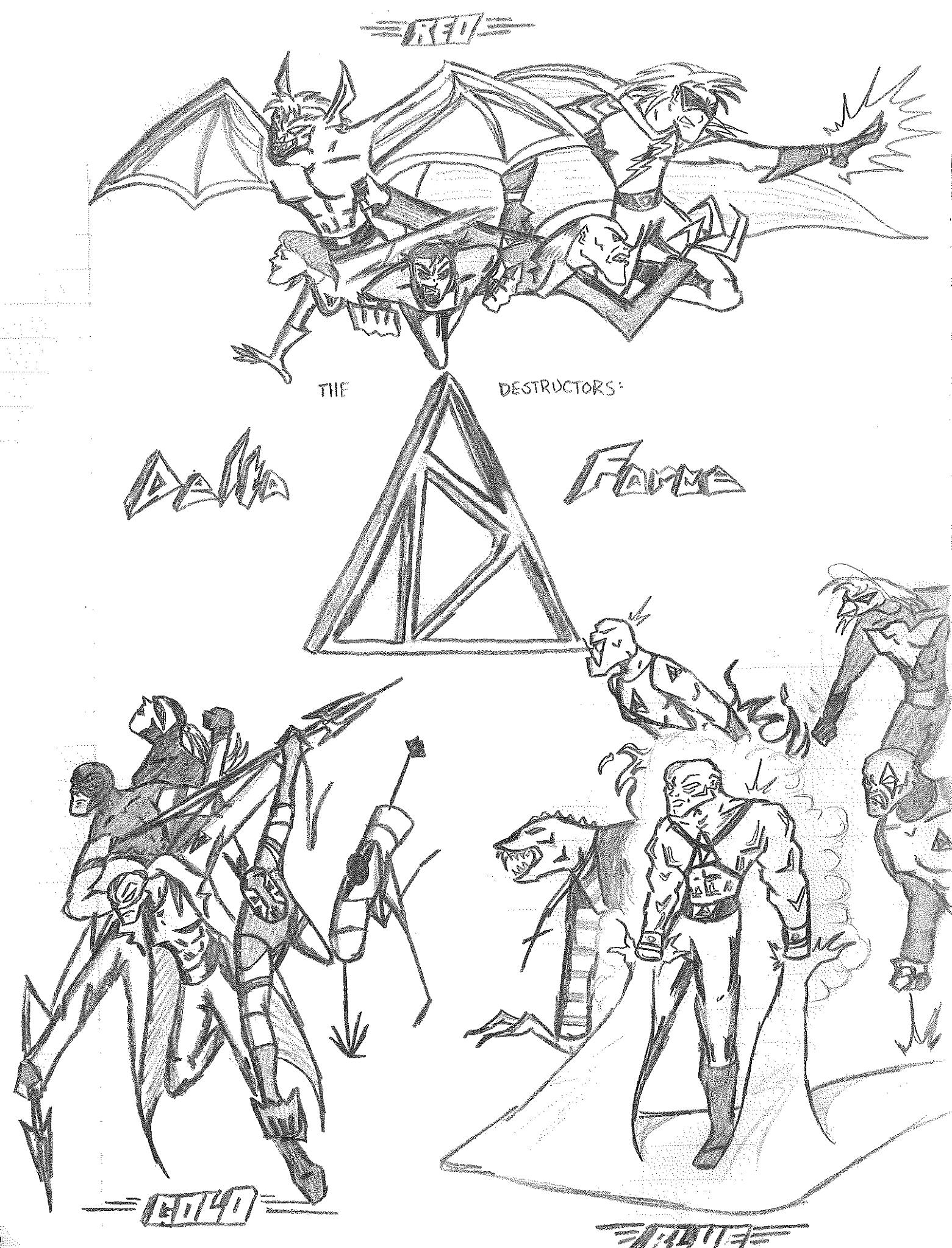 After a number of ideas, I settled on one that would essentially create a global presence for the Destructors, ensuring they would be able to handle any threat at any time around the world. The Destructors: Delta Force would have restructured the entire roster, removing older members with fresh faces, into three separate teams that were based in different parts of the world. Each color designated team consisted of five members, and I feel there was no logistical reason I structured the teams the way I did.