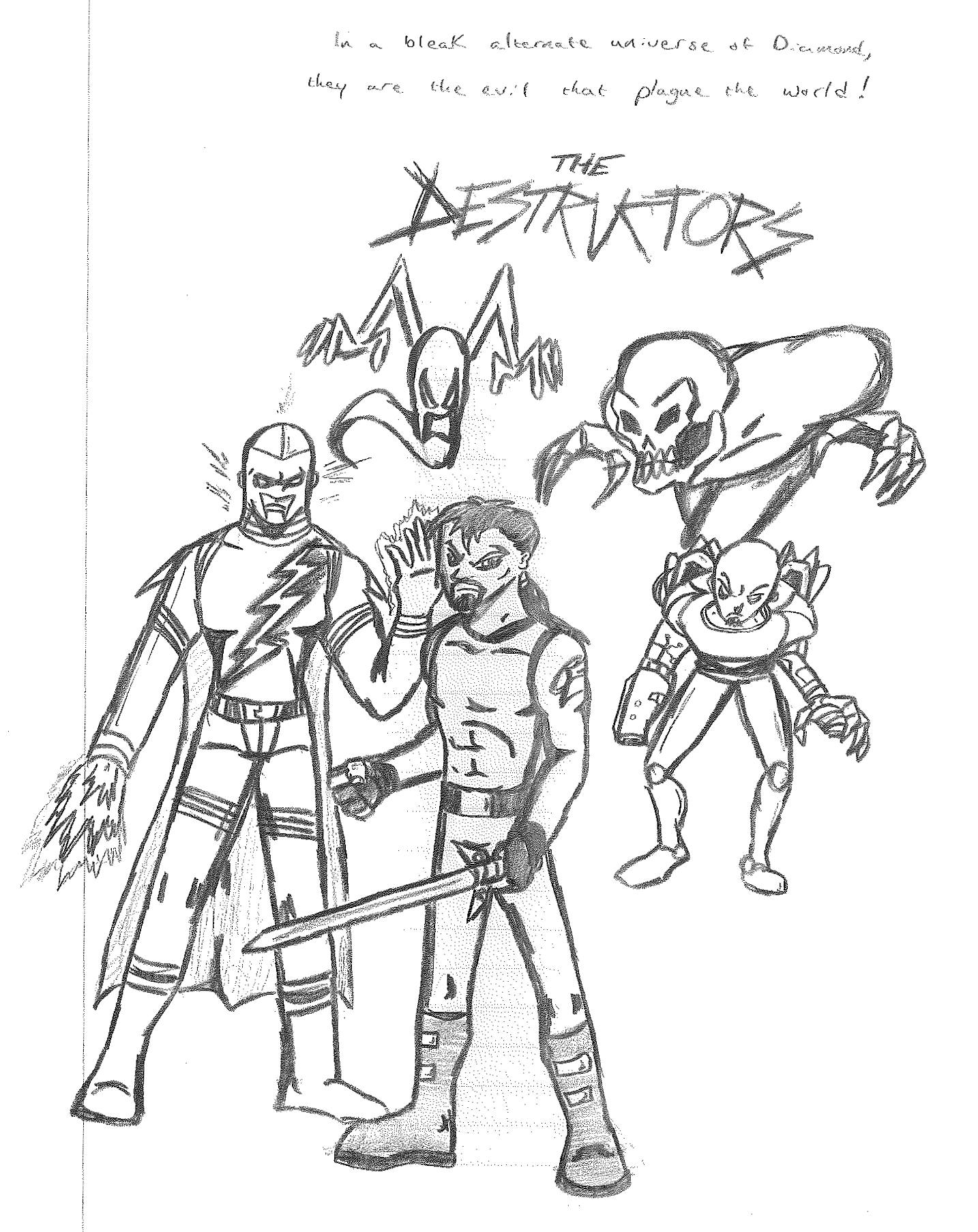 And that ends my run of the Destructors. I have seriously considered finishing this story. But for the same reason I didn’t finish back as a kid, I’m not really sure where to go with the story next. This was the blessing and curse of my abilities where I could come up with numerous concepts for story ideas, but not be completely sure where they would end up. This is what led to many unfinished projects that you can find all over this website. I clearly had an idea when I drew the one-sheet that the team would have to overcome the illusions of being mice or whatever silly idea I had at the time.
