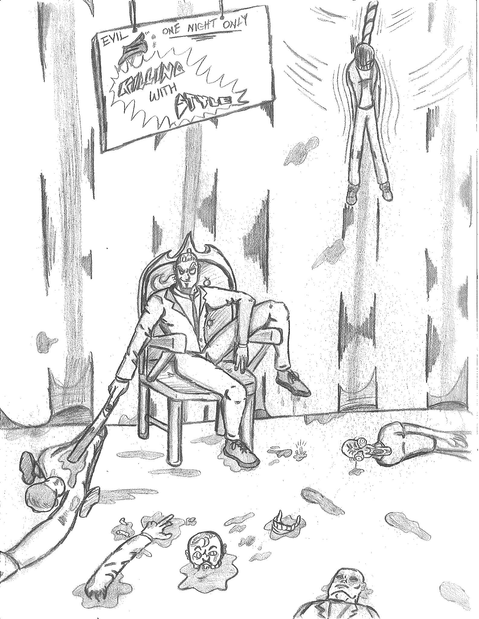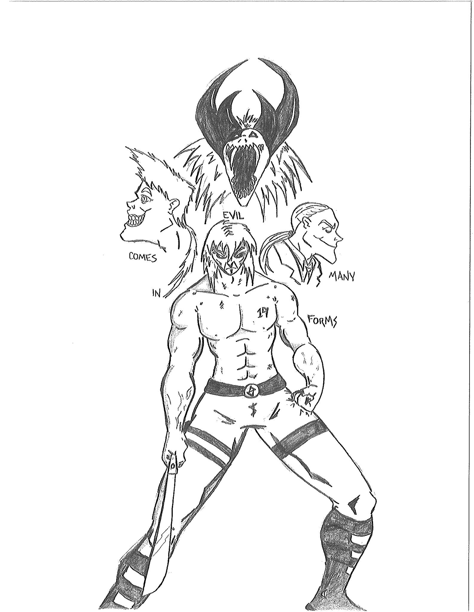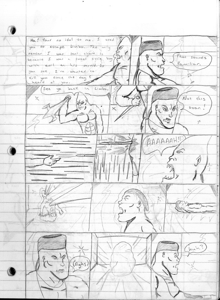 I’m not completely sure how I came up with the concept for the character of Seth Dusenberry, aka Sacrifice. The core idea stemmed from the idea of transferring damage to someone else. This could have surfaced from playing RPG games that have reflect spells. I honestly cannot say. I just know that the concept intrigued me. And I’m not sure when I decided to use the character for this storyline, because he was not created for this purpose. Initially, it was a simple sketch of the creature. When I decided to use him for this narrative, I decided to make him a human that escaped the afterlife which turned him into this for some reason. It sounded cool as a kid. I guess I also thought that hairstyle was something cool as well. I never had any plans for the character beyond this story and couldn’t even tell you the last time I sketched him. I can at least myself credit for attempting new villains.
