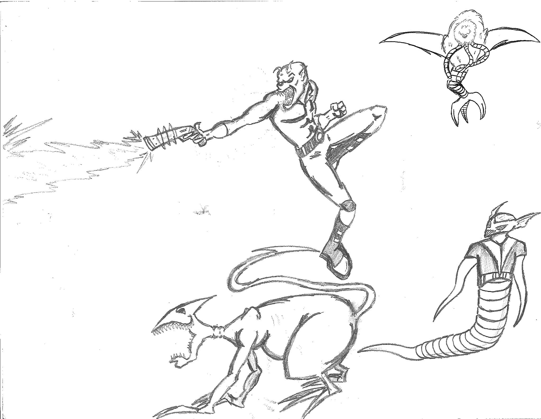 This was basically my new take on The Alien Knights storyline from Lightning Bolt & the Ghost Kid. However, I was not content just trying to redesign the aliens I had created before. This time, I decided to sketch some of the wildest shit I could come up with. I can’t remember who said it, but an artist once stated that when it comes to aliens, the weirder, the better. I’ve held on to that philosophy ever since. I love many of these designs.
