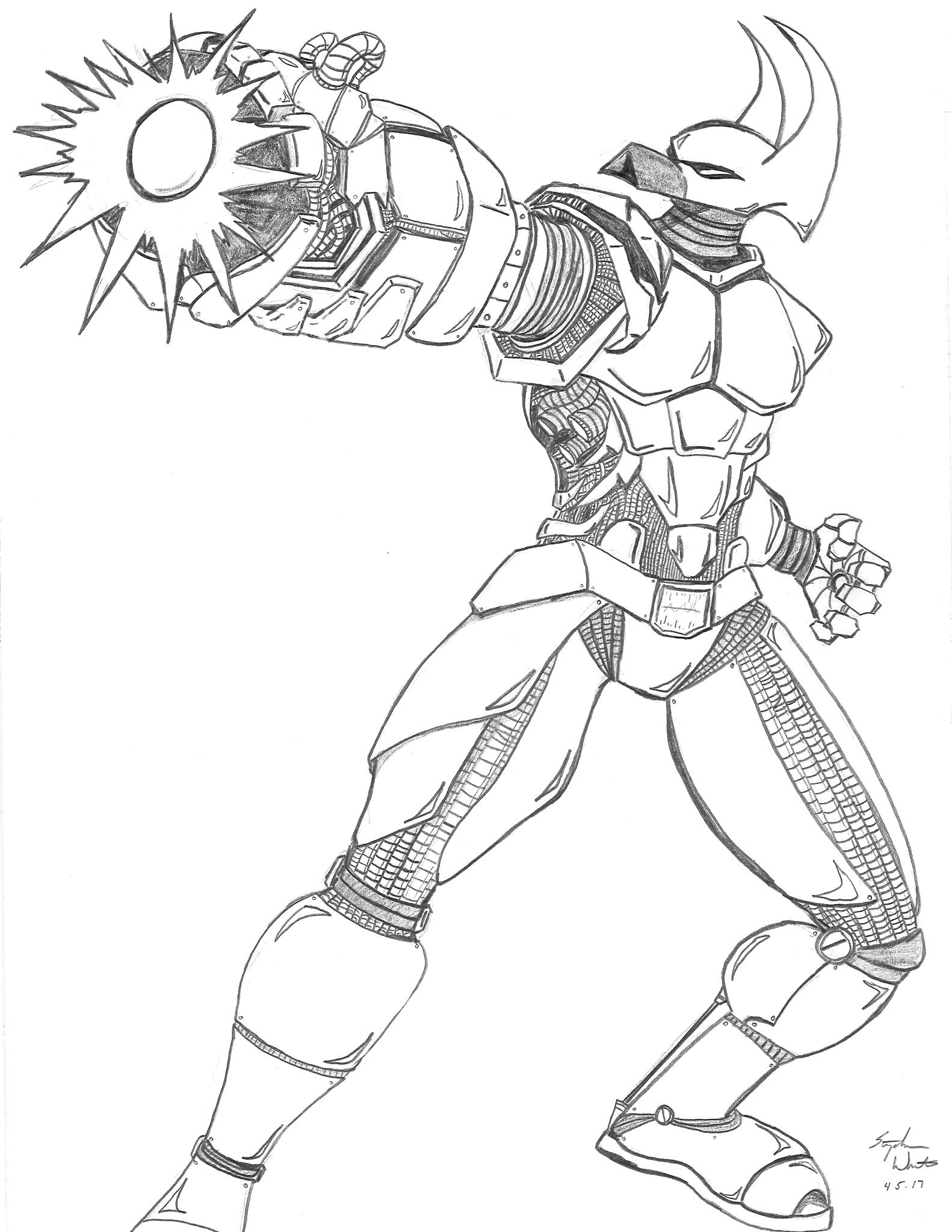 Out of all of my original ideas, the use of Robo-Rabbit wasn’t initially in the cards. However, I began developing a storyline involving a government contractor that is hired to develop armored suits to help police, and eventually soldiers, fight back against the encroaching metahuman threat. Meanwhile, an independent developer attempts to push the idea of drone soldiers controlled by one singular AI, removing human error or emotion, and improving the efficacy of the soldiers. The main AI was a prototype dubbed Robo-Rabbit, which was a nickname in which others used to mock the project based on its crude design. The person behind Robo-Rabbit would be Lance Smith, giving him a larger purpose in the grand scheme of things. I was so happy I found a way to work the character in because I fucking love that design above.
