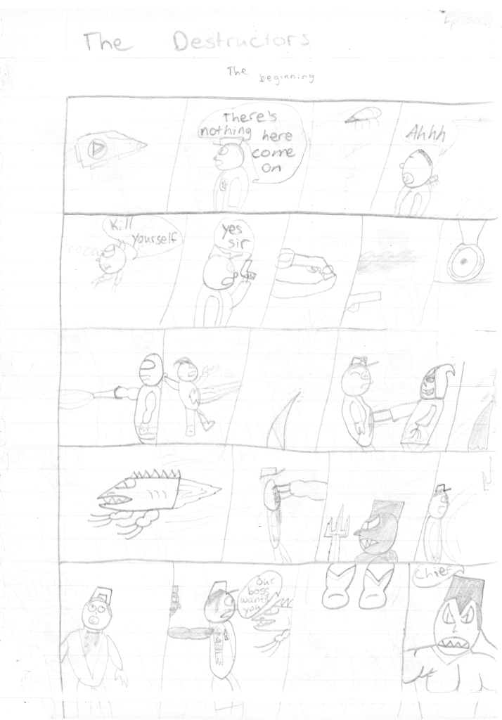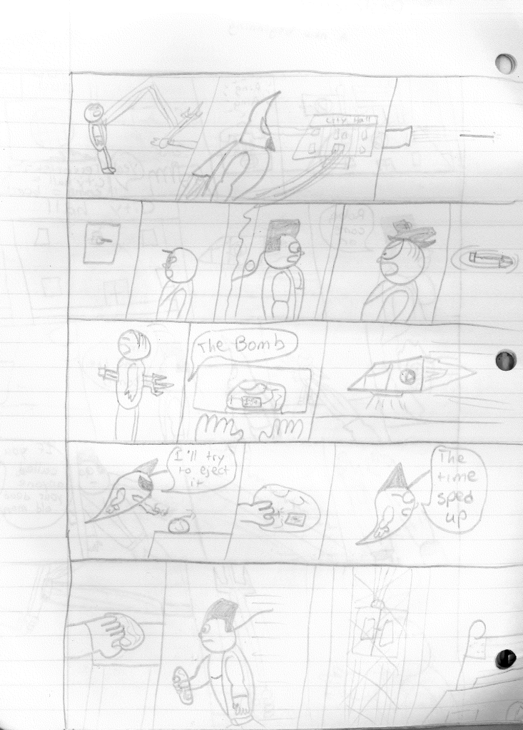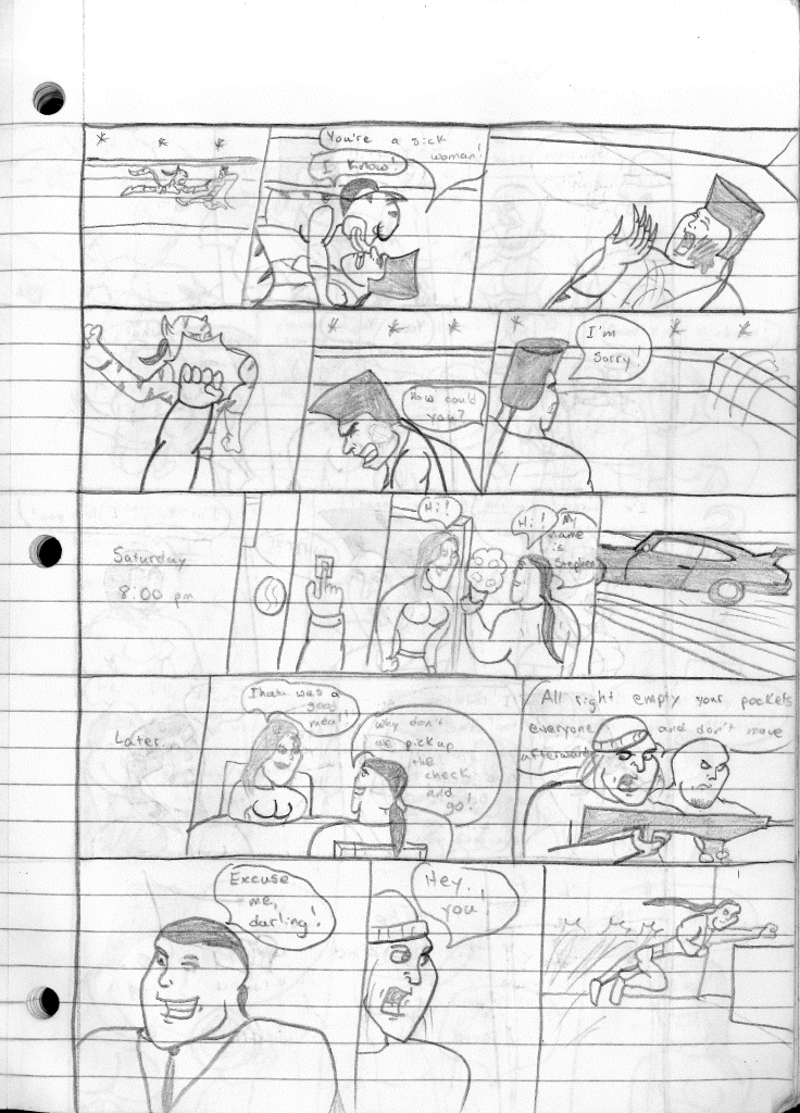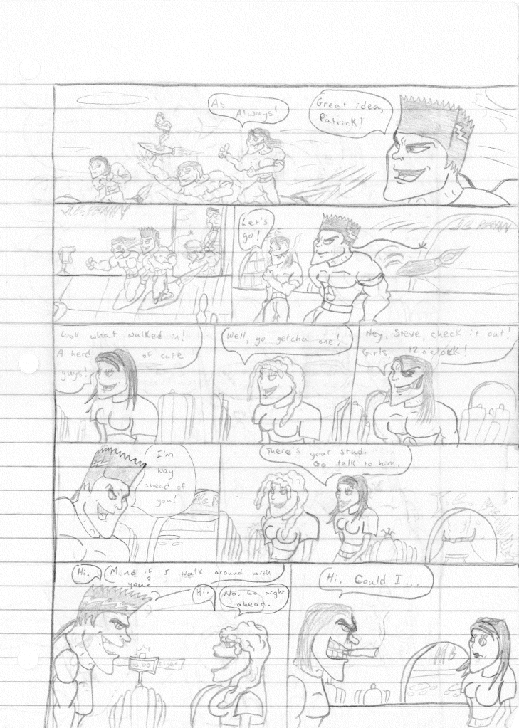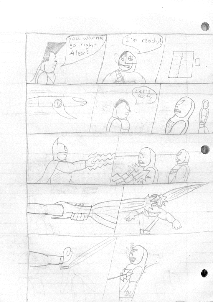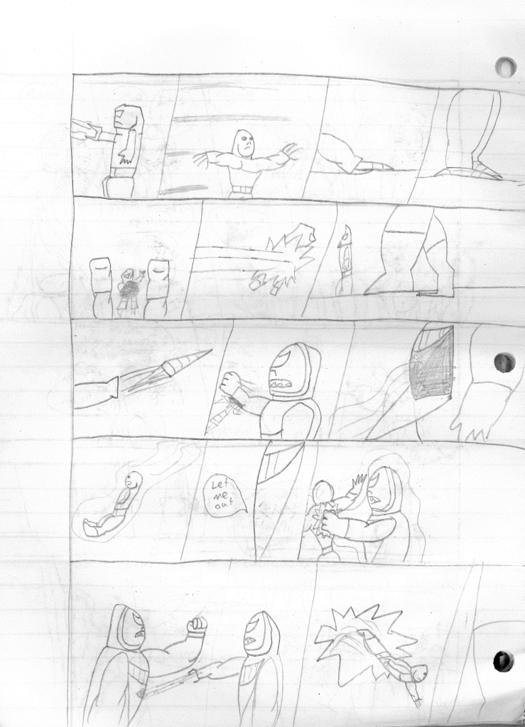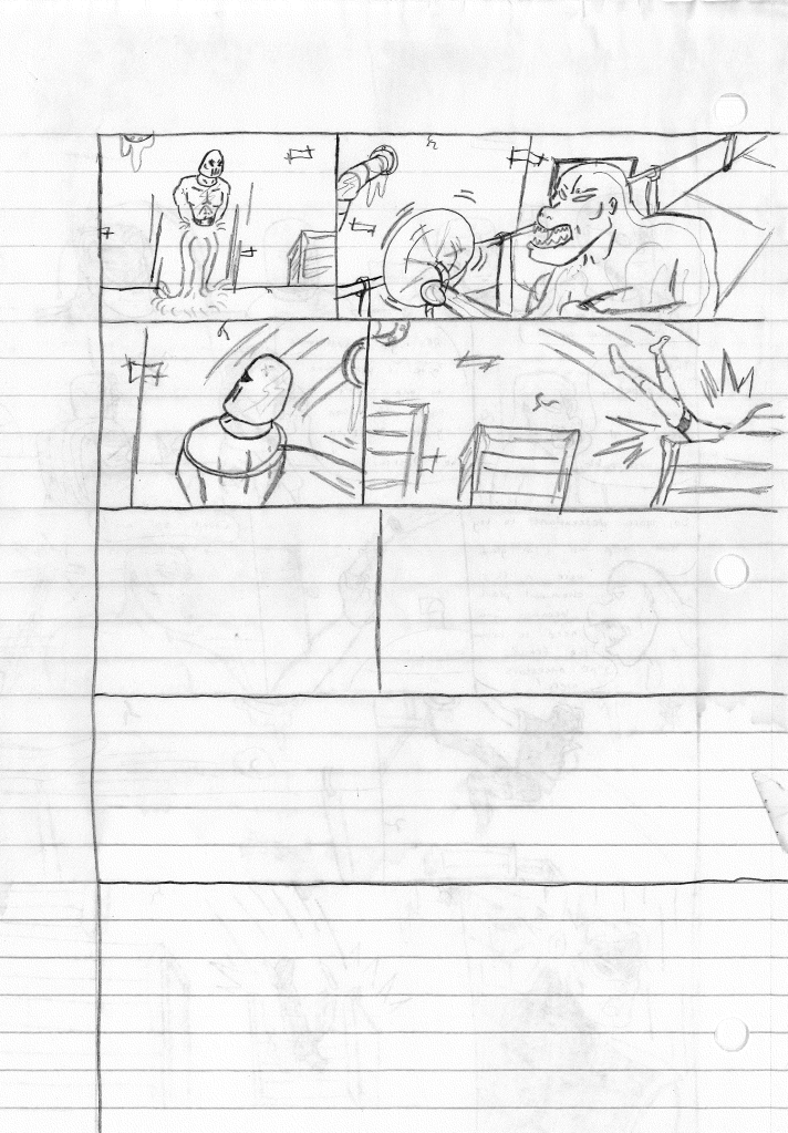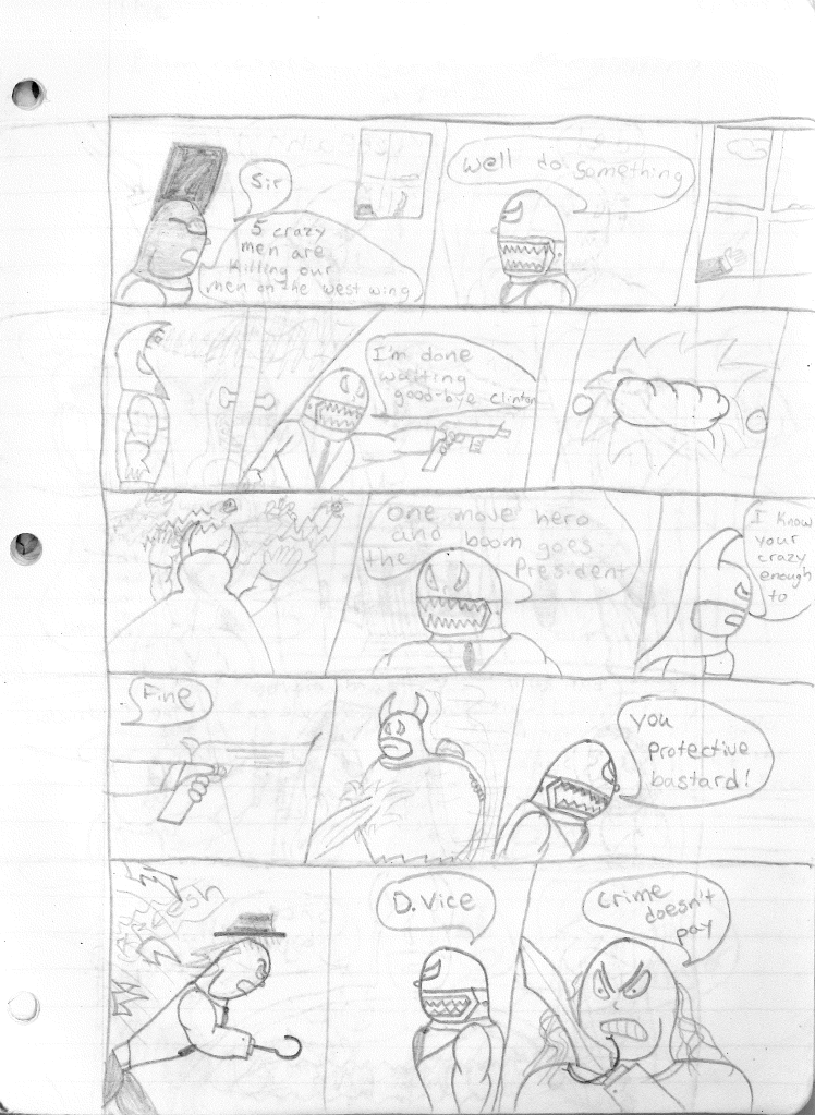 This was the last Destructors story that I wrote to completion. Which is really sad that I ended it on a cliffhanger. Furthermore, this episode showcases the growth I was having as a writer since the Destructors did not show up once. I say this showcases growth, because I’m focused on getting to know our villain. If you go back to the previous episode, it was page five before Lightning Bolt and his gang show up to investigate. I feel like this story should not have been split into two parts since I was basically working up to the same amount of story pages, if not less. But for dramatic purposes (and probably a lack of ideas), I ended this episode here.