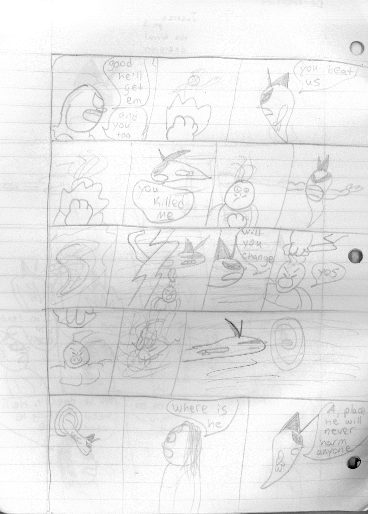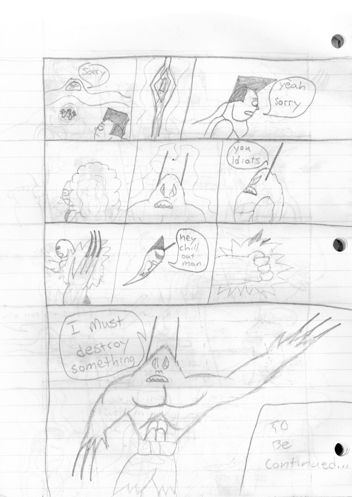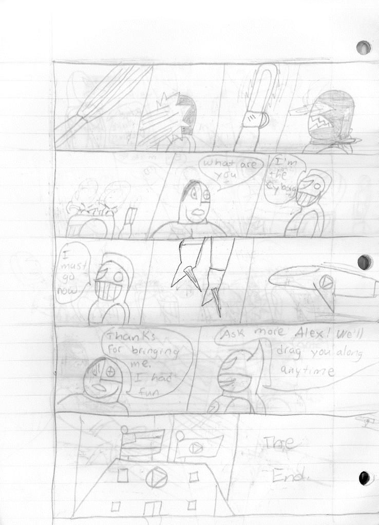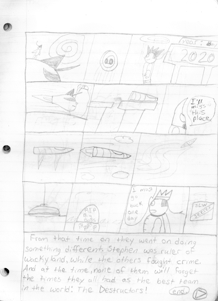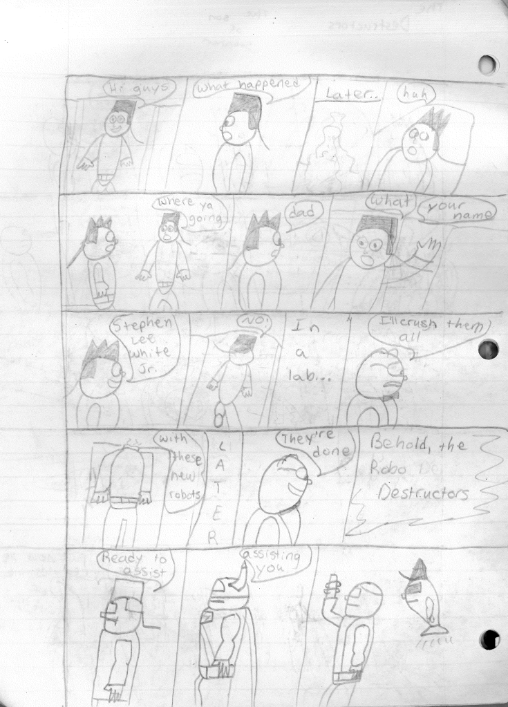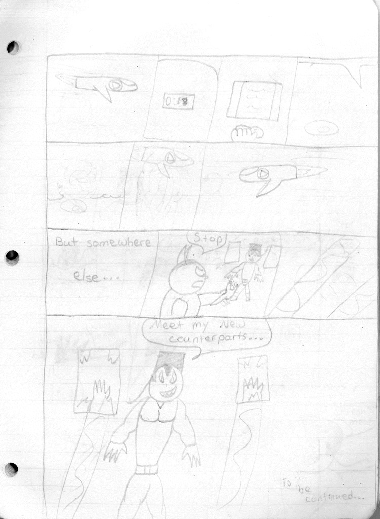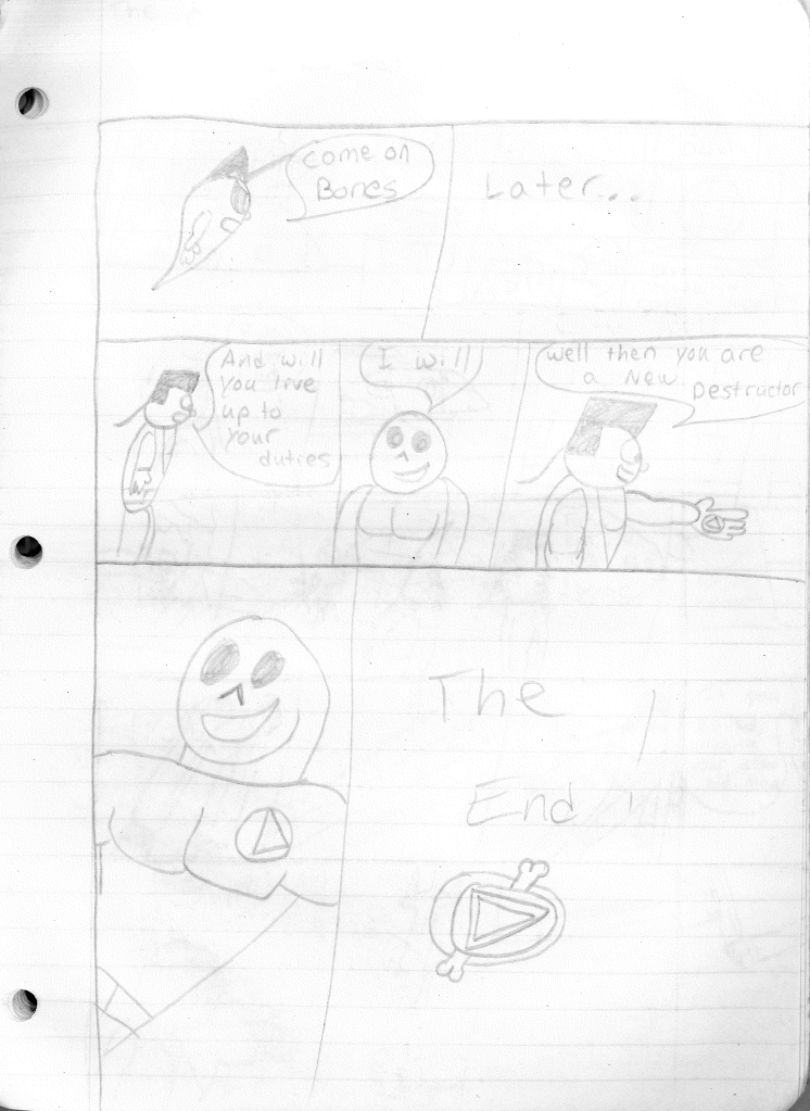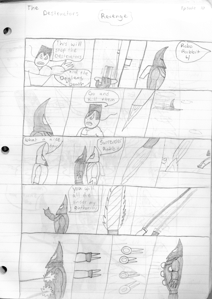 While I feel like this marks the end of an era, my characters never stopped existing in my head. Before stopping, I was attempting to build relationships between characters, as seen in the last page with Bones hanging out with Dragon. I had also tossed out the separate team rule and was just using whatever Destructor I needed for the stories. This felt like a great idea, but I noticed I didn’t rotate the roster out consistently. Hell, Robo-Rabbit wasn’t even seen in season four. Regardless, I continued to plot their futures, even if I wasn’t writing the stories. While I do criticize many of my older stories, I can see the potential in them. I’ve currently been reexamining all of my stories as blueprints to see how I could shape it into something better. Perhaps in a few years, you may actually see a new Destructors story.