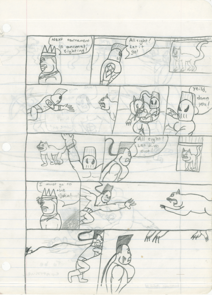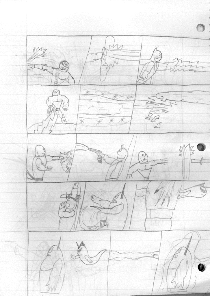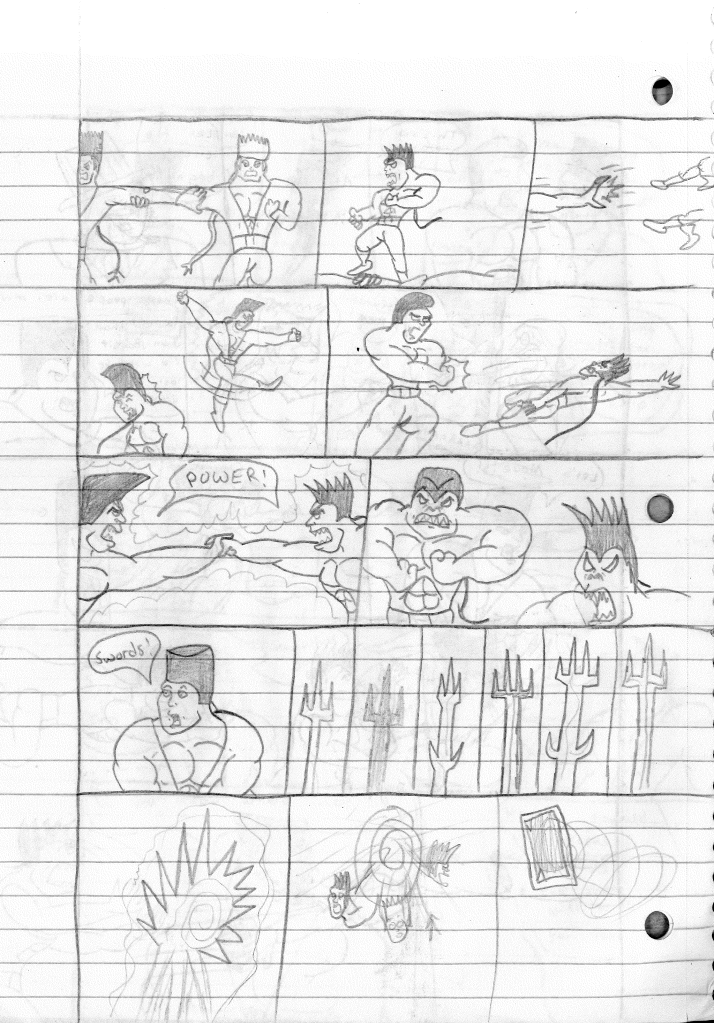 Ok so there is quite a bit to unpack here. As I’ve established on all of the other pages, I was a kid who didn’t know how to write properly. I would assume that since I established in the team’s formation as well as the identities of their enemy teams back in Lightning Bolt & the Ghost Kid #5, that I just decided to jump right into the action. In fact, if you read them back to back, it flows narratively. For everything my brain didn’t do right, it found a way to do something impressive along the way.