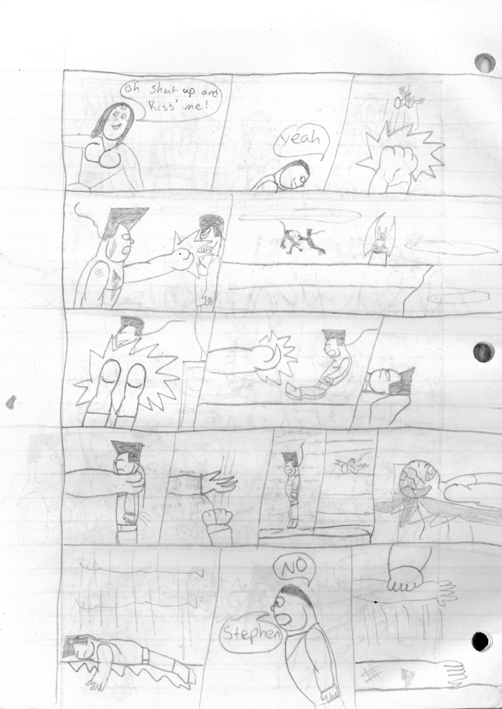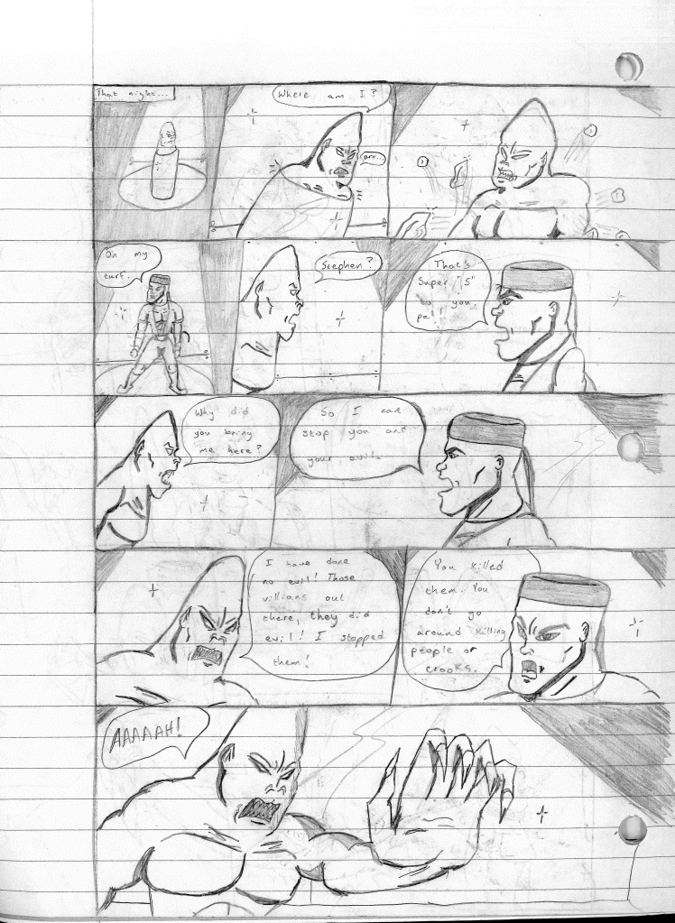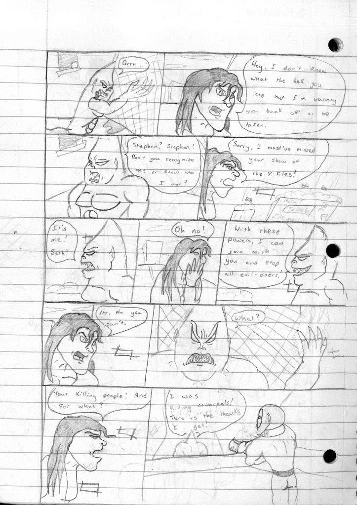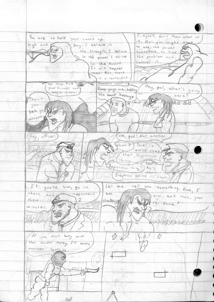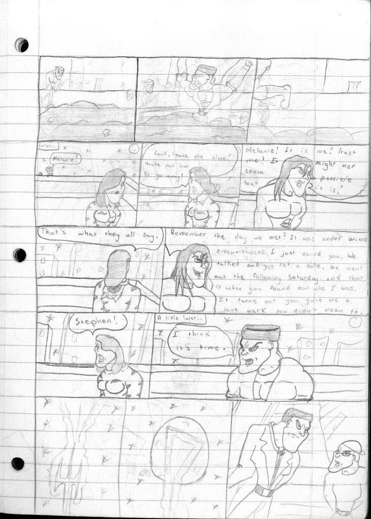 While I didn’t mention it in the story summary, this was the first story where Stephen is referred to his new moniker, “S”. During this point, I was becoming uncomfortable with the fact that my superhero persona was just being called by his name. I don’t see myself as a person with a massive ego. As I began to refine my art and my stories, I was more eager to show them off. What I wasn’t eager for was a preconceived notion that I thought of myself as this larger than life superhero. As I mentioned before, this Stephen was not me, but a version of myself that I wished I could have been.