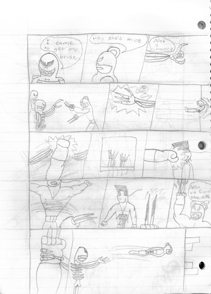 I know for a fact that I could write this ten times better now, which more depth and nuance. And I find it odd that I was attempting to tackle these subjects at such a young age as well. It’s almost as though a part of my brain craved more than just big action pieces, but I still enjoyed juvenile humor. I don’t know how to explain it. I have been reconsidering this story in a new context, and I’m not sure I would make Bones… well, essentially a zombie. But who knows? Something else may make me reconsider that thought avenue.