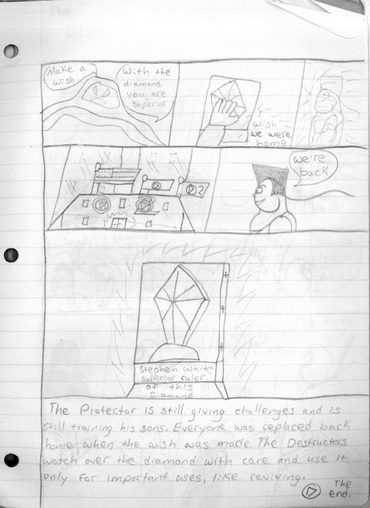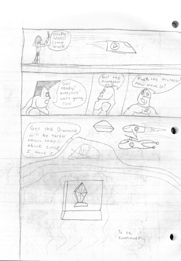 The there’s the whole McGuffin of it all: the diamond. This was a very specific choice since I called my universe “The Diamond Universe.” I believe I was attempting to have that mean something deeper. However, I never attempted to explain what the diamond is, where it came from, and why the Protector even had it in his possession, why he felt the need to hold this test, and why does this diamond grants wishes. These are very important details that SHOULD be considered when writing a story such as this. But once again, I didn’t. At least, I wasn’t considering everything. But I WAS focused on something very specific.