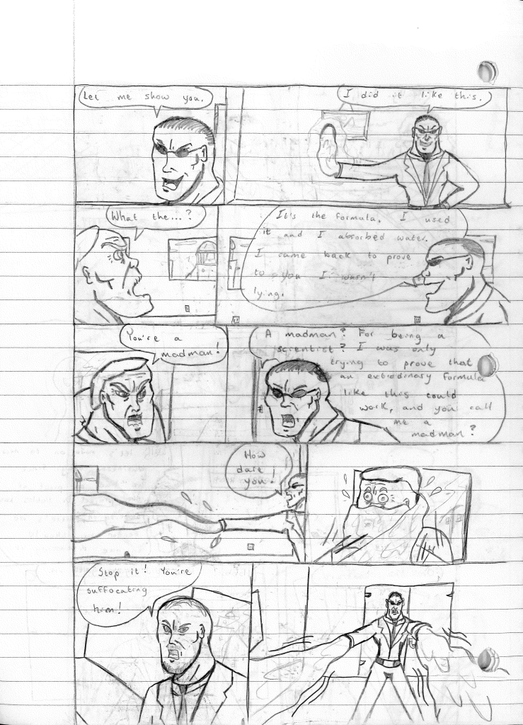 Seeing how Harold was initially a scientist when I first wrote the story, I decided to lean back into that aspect. What if the research he was working on could be the reason for him getting powers? So, what was he working on? I eventually landed on a formula that combined matter. It’s an extremely simple explanation for something that should be incredibly complex. I still didn’t care for the idea, and still don’t to this day. But it helped open the door for additional story ideas, while additionally creating more confusion. How exactly did Lightning Bolt’s brother, Thunder, get the formula? Who the hell is Shockwave, a character never once seen in these comics, yet created by this formula? Retcons are fun. I’m also not sure why electricity didn’t immediately kill Liquidator. I’m sure I had a rule in my head that I never wrote down.