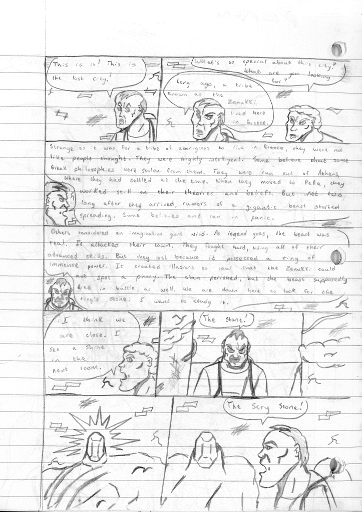 The story begins in Pella, Greece. Dennis Brady and his research assistant Mitch are in search of the lost city of Zenukki, which they stumble upon. As they look around, Mitch is concerned that they were misinformed, but Dennis is adamant that what they are searching for will be in these ruins. Mitch suddenly falls through the floor and into another room. Mitch insists that Dennis find his way down below. Whatever is down there confirms to Dennis that this is the lost city. Mitch inquires what makes this city so special. Dennis explains how the Zenukki were highly-advanced aborigines that migrated to Greece, with some theorizing that Greek philosophers stole from them. A tall-tale spread across Pella that these people brought a large creature with them to terrorize the citizens there. However, additional stories tell how the Zenukki’s entire culture was obliterated by this creature, which makes more sense when you can’t find evidence to the contrary. This creature apparently possessed a ring that could create illusions so real, it was hard to identify it as a fake. Dennis is in search of the ring, more specifically the stone within the ring, known as the Scry Stone.