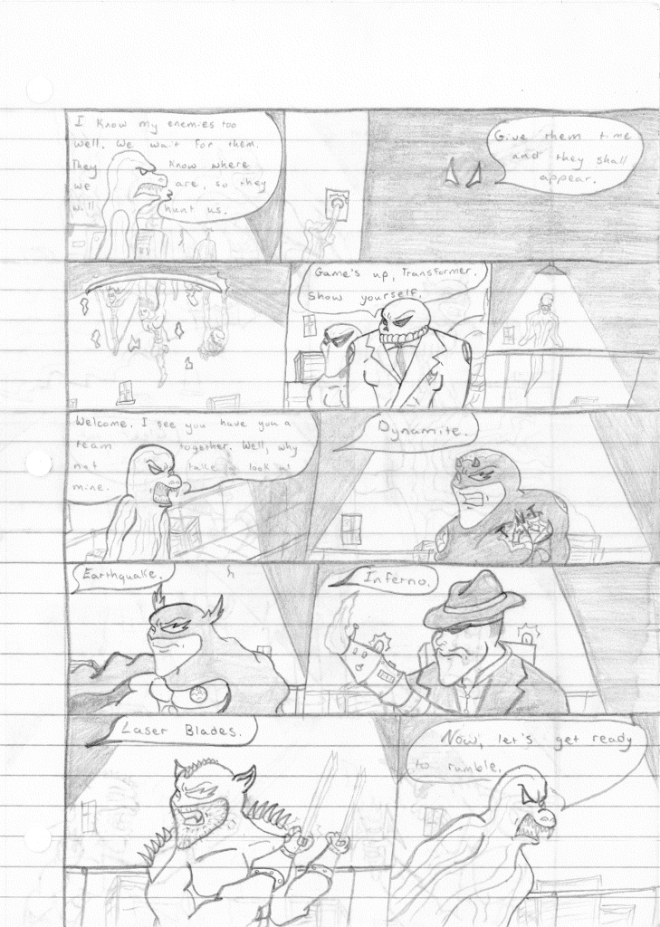 It felt very clear from the start of the story that I wasn’t very sure where I was going with this narrative. If I had a guess of what I was sort of planning is that this team would be defeated and transformed. And then in the third episode, both teams would finally come together and stop Transformer and the Evil Leaders, establishing them firmly in the future.