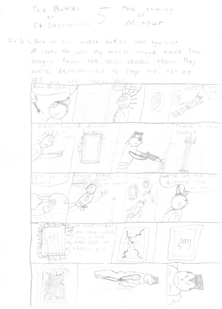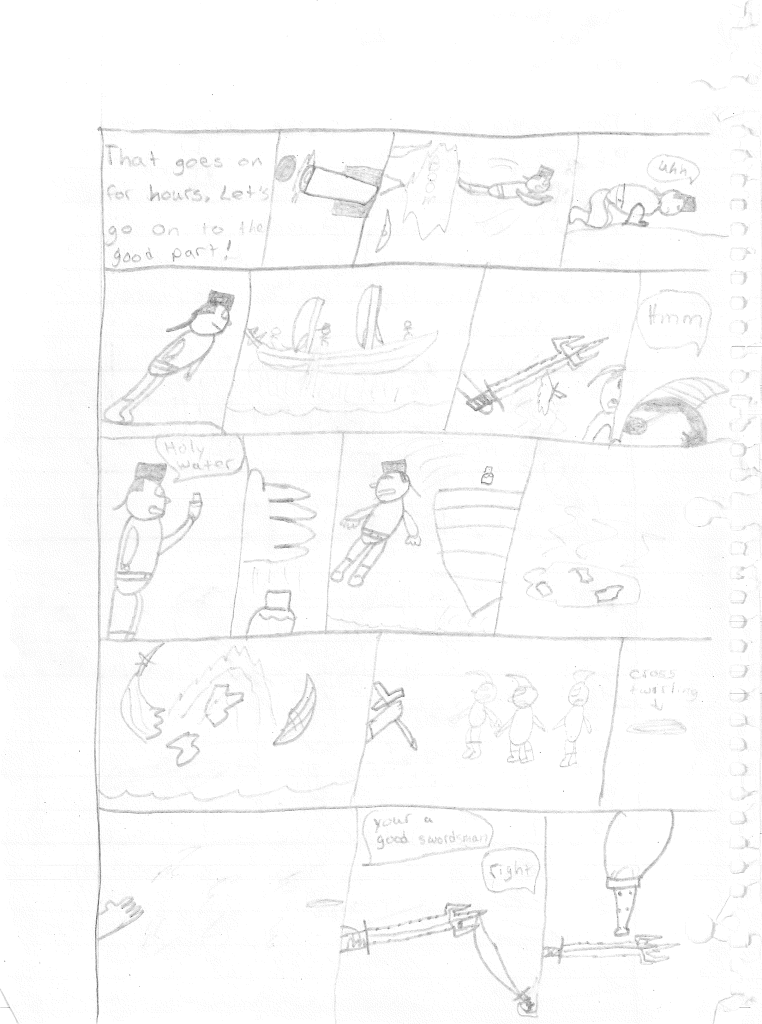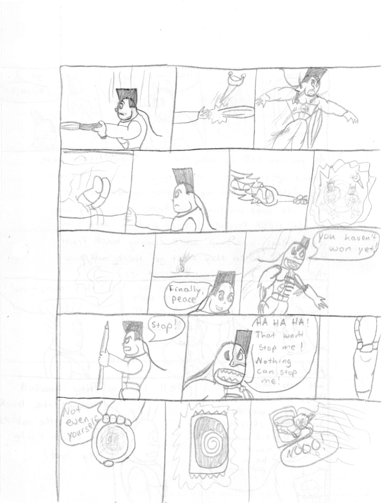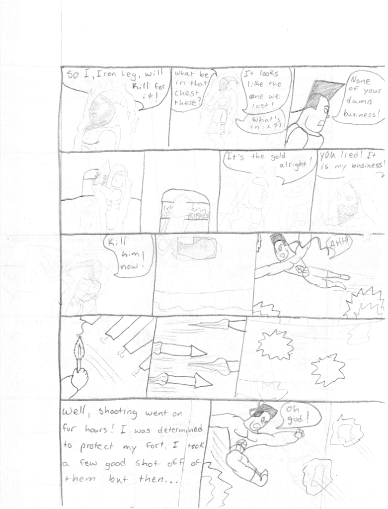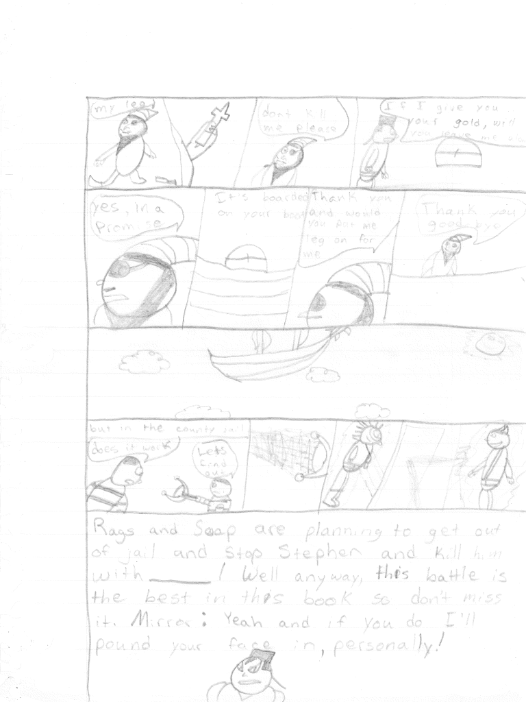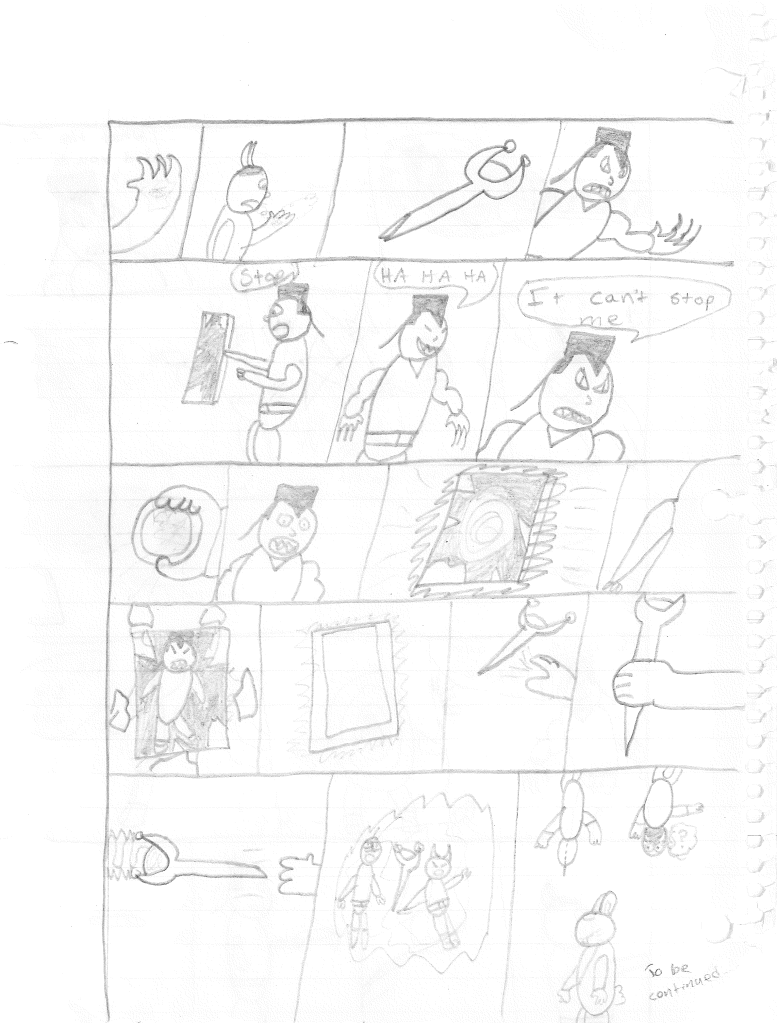 Mirror finds Stephen’s old sword and immediately attacks Stephen, with both getting some good licks in. Rags uses his wand on Stephen to assist, but all that does is anger Mirror. Meanwhile, Stephen finds the magic mirror in the space between dimensions, which is confusing because it was near the fort when they used it to summon Mirror… so how did it… you know what? Doesn’t matter. Stephen somehow escapes the space between dimensions then attempts to use the magic mirror on Mirror but to no avail. But then, Stephen produces a small mirror and points it directly at Mirror which causes him to be sucked back into the magic mirror. “How?” you may be asking. Doesn’t matter. Stephen then uses Rags’ wand against him and Soap, sending them to an alternate dimension. TO BE CONTINUED…