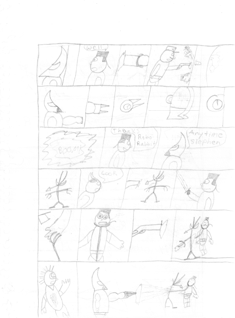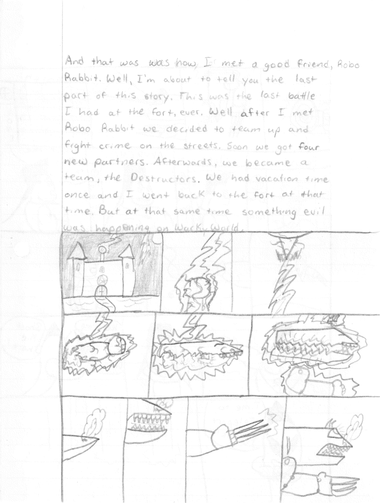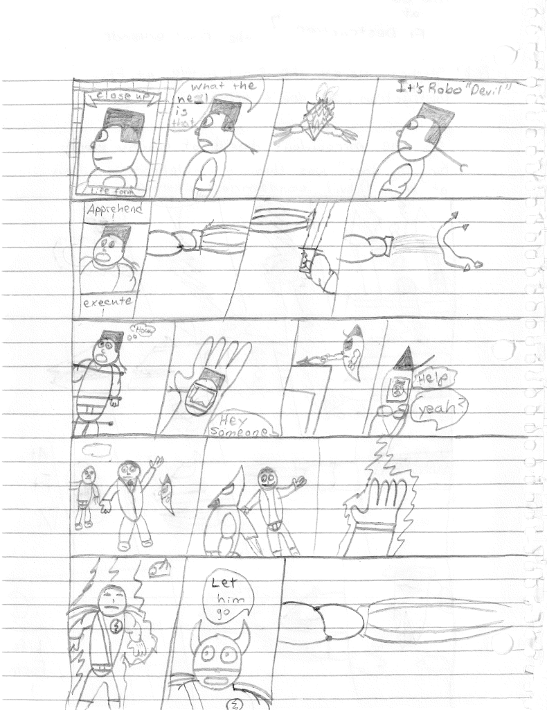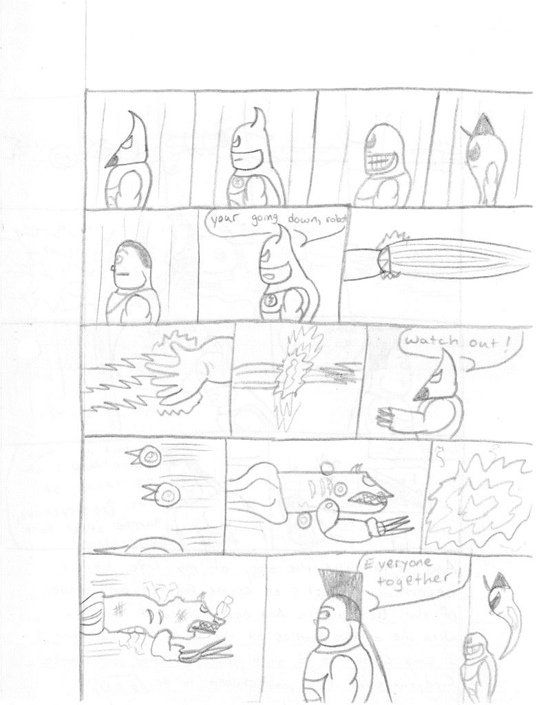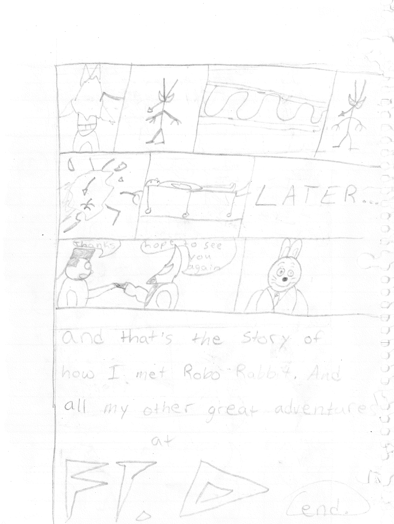 The events of the last story led to the Team-Up of the Century, which was my first crossover event. I was so excited about the prospect that I wanted to make it huge. It would not only be episode six of The Battle of Fort Destruction, but also episode 8 of The Adventures of Robo-Rabbit. Each episode matches almost panel to panel with certain variations to reflect the story more to one side. Looking back on it now, such an event should have been two-parter split between each series. Still, it’s an impressive feat for a twelve-year-old.